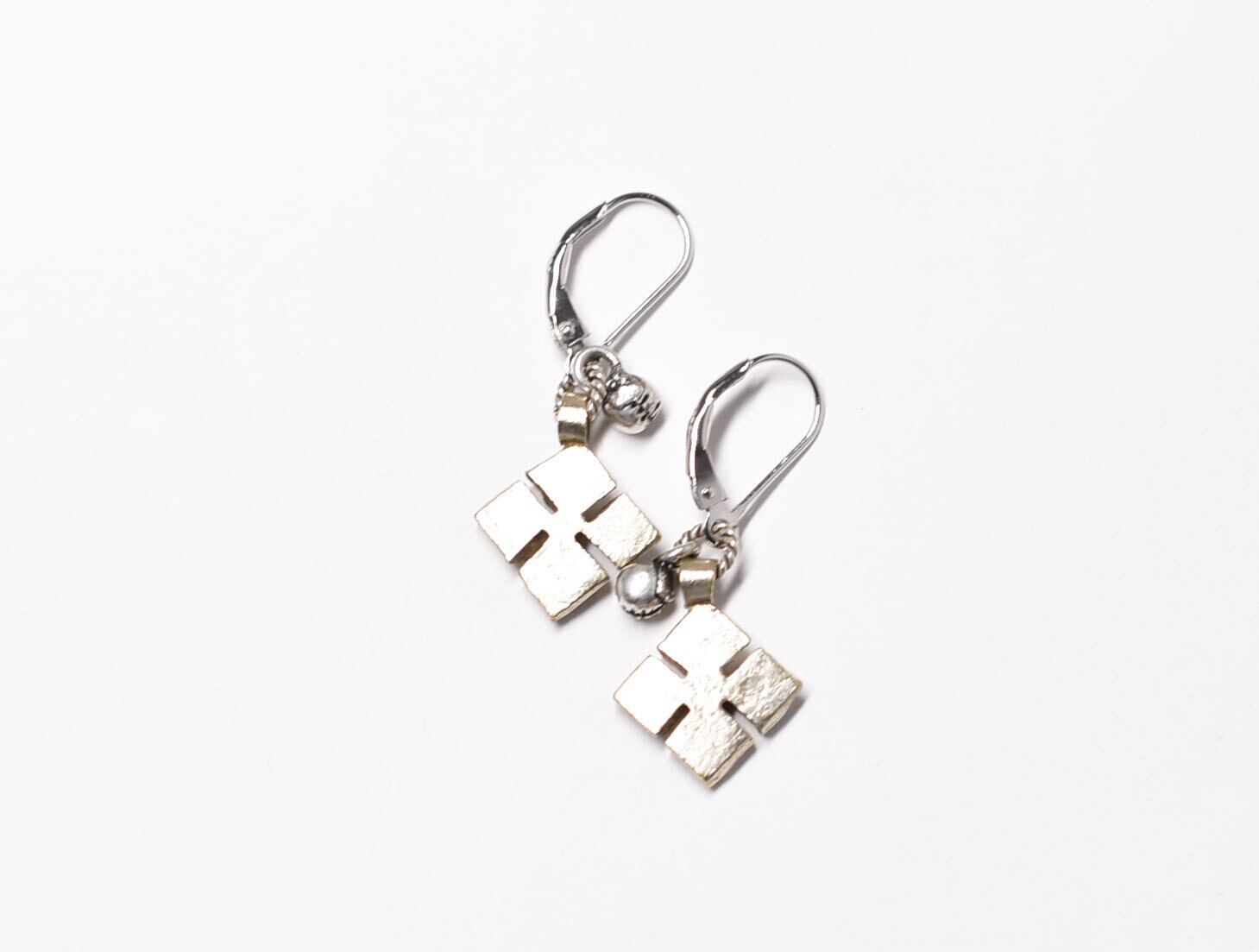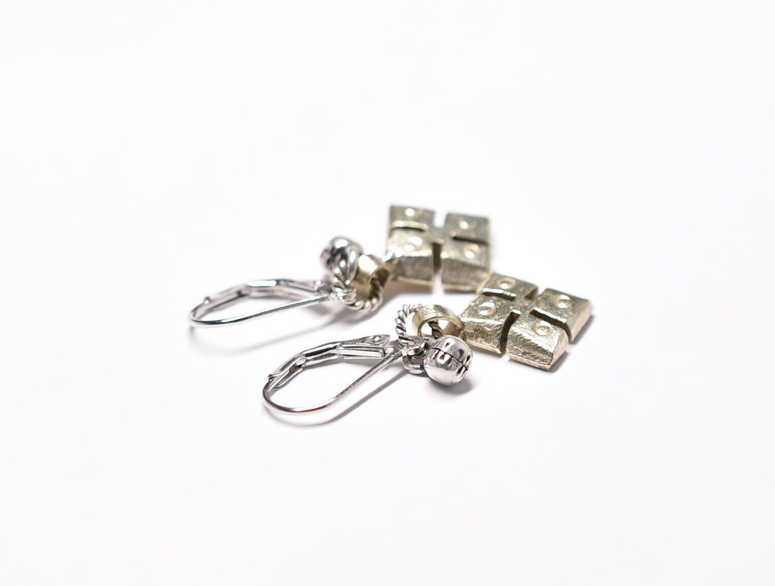 エチオピアンクロスとインドシルバーの鈴を繋いだピアスです。