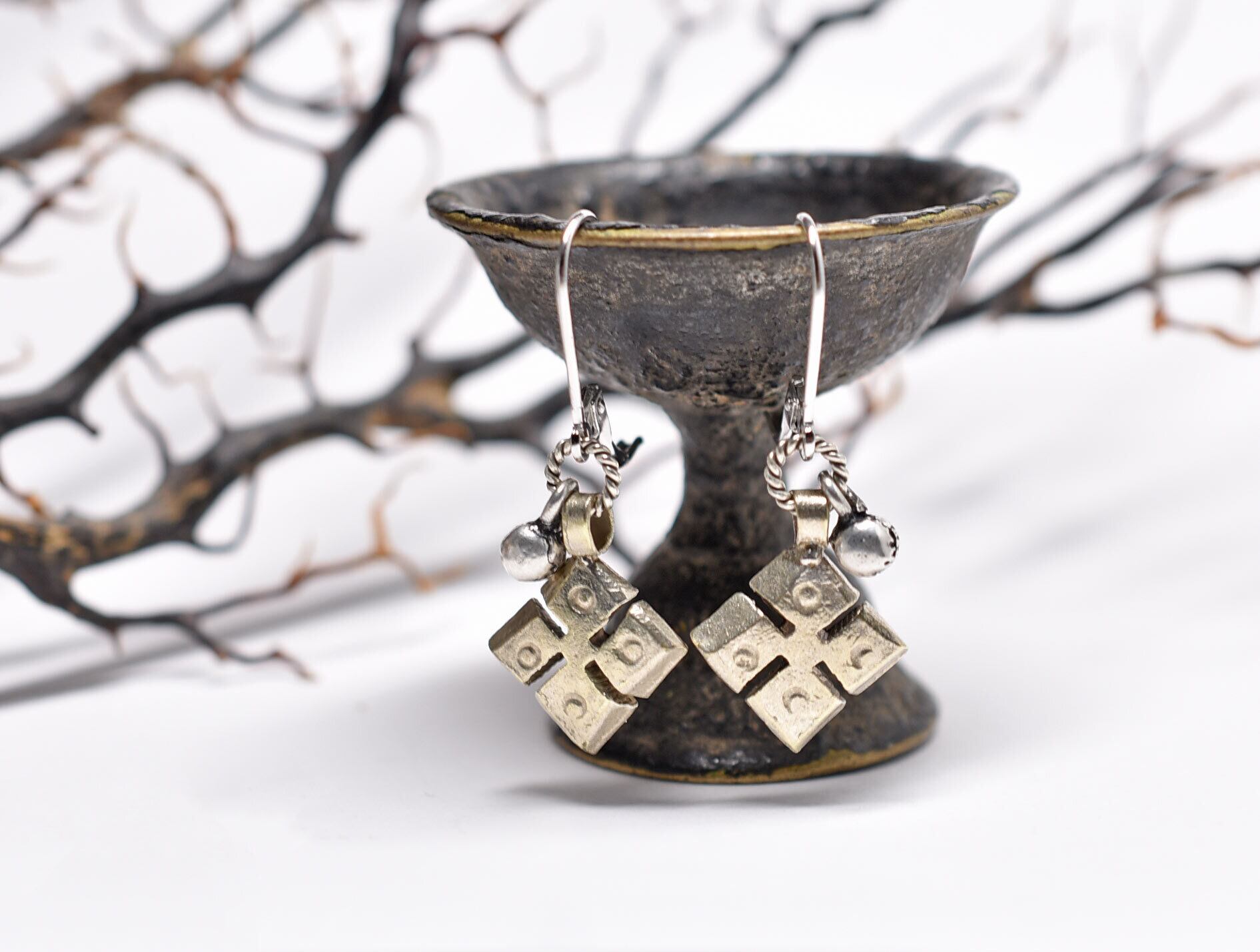 エチオピアンクロスとインドシルバーの鈴のピアス
