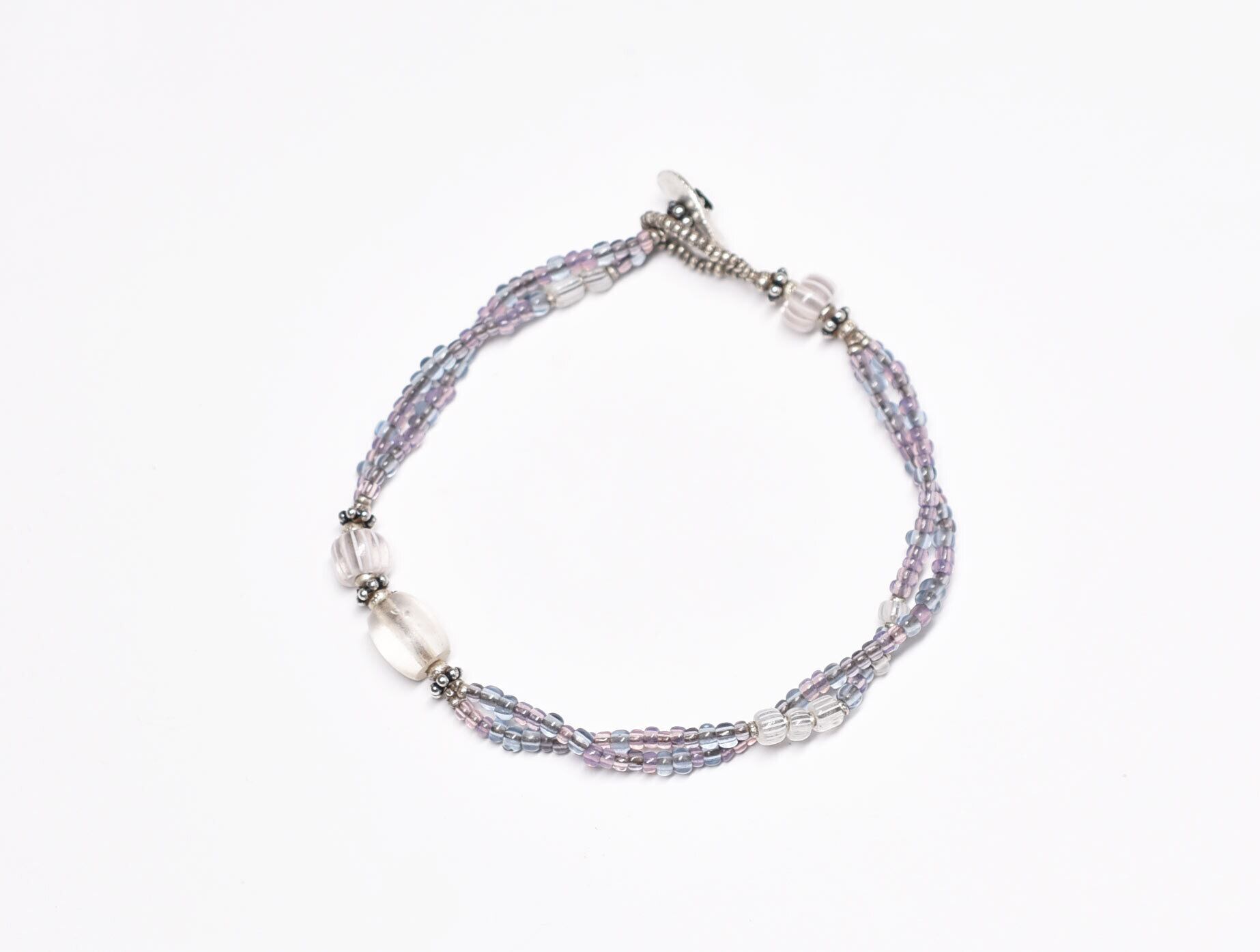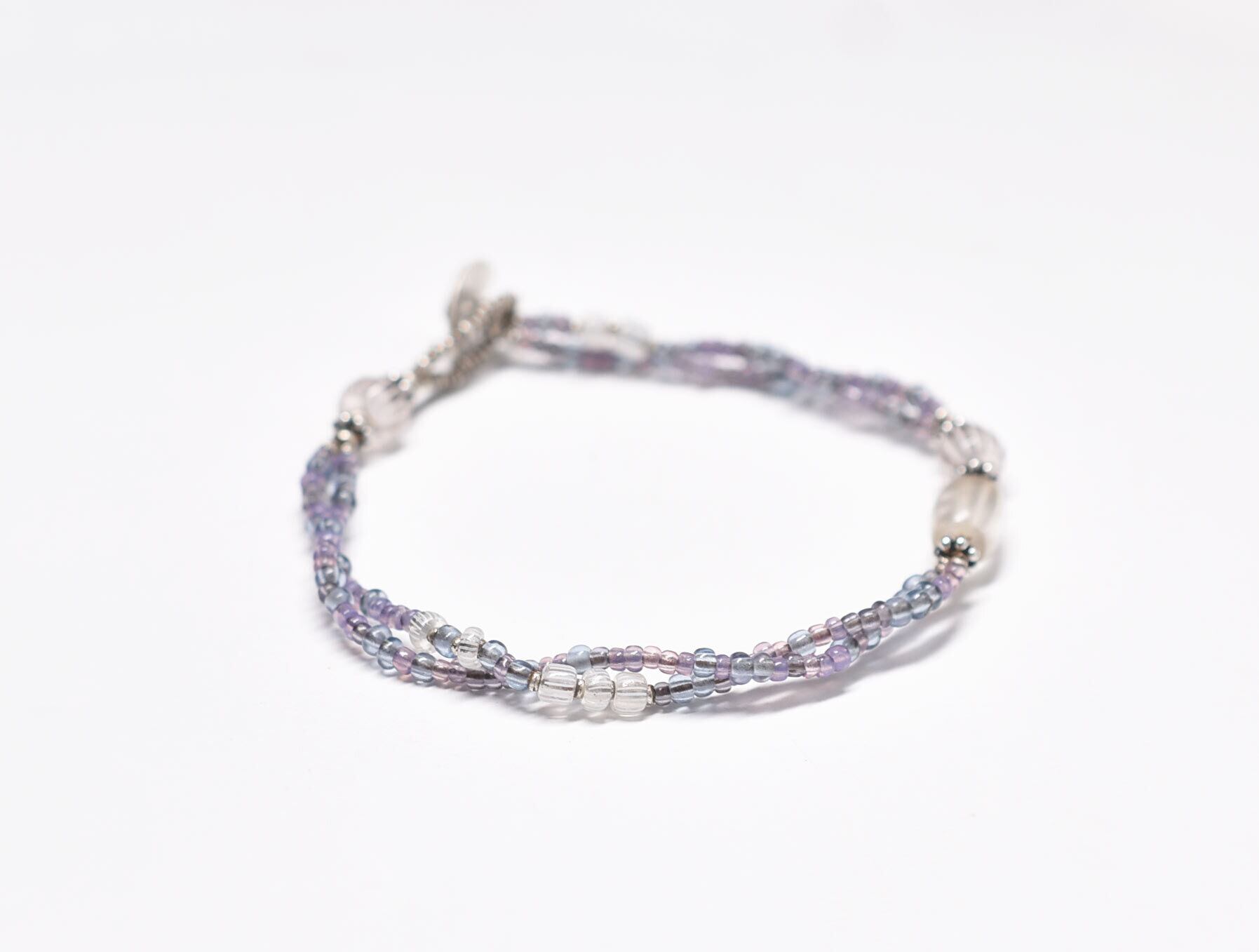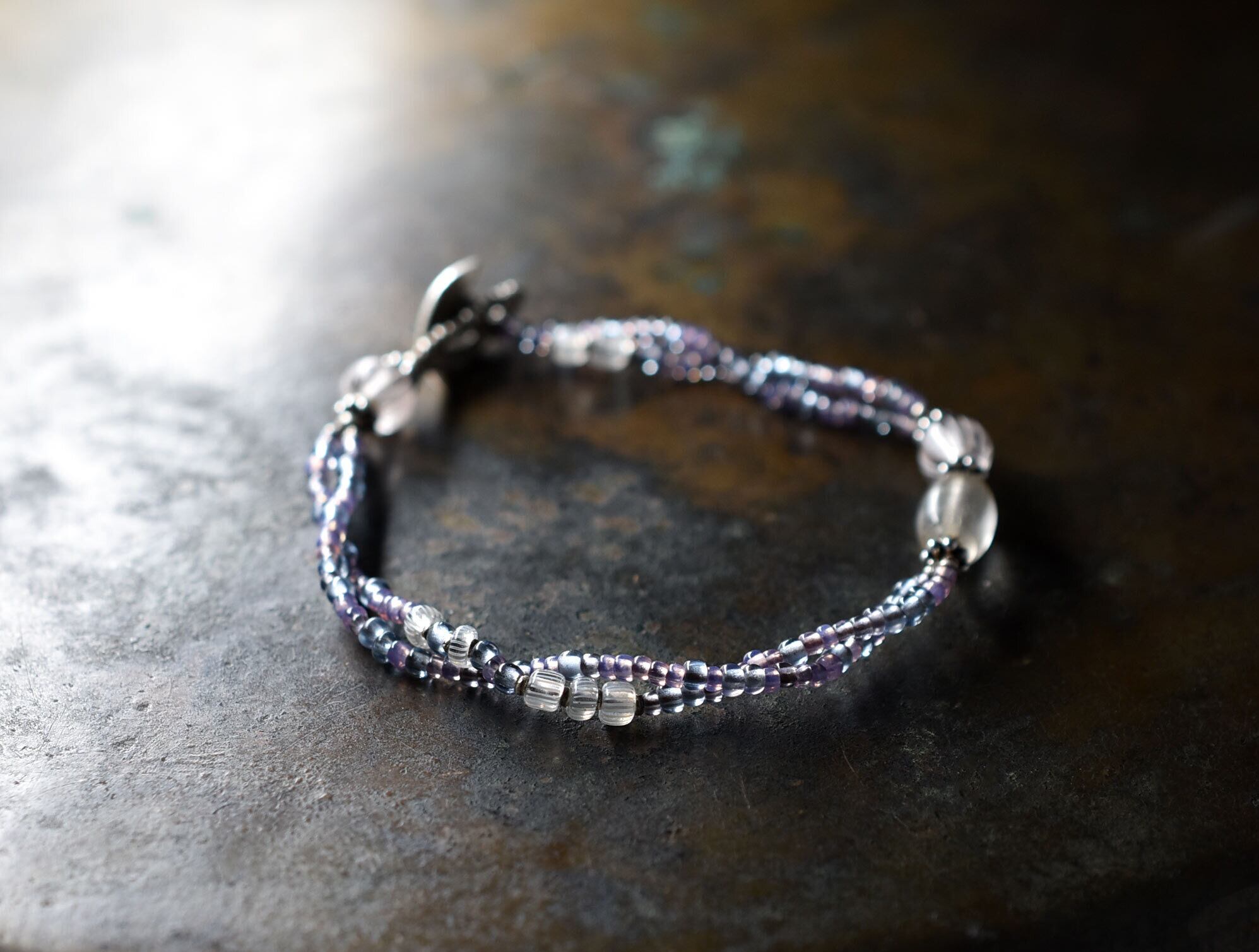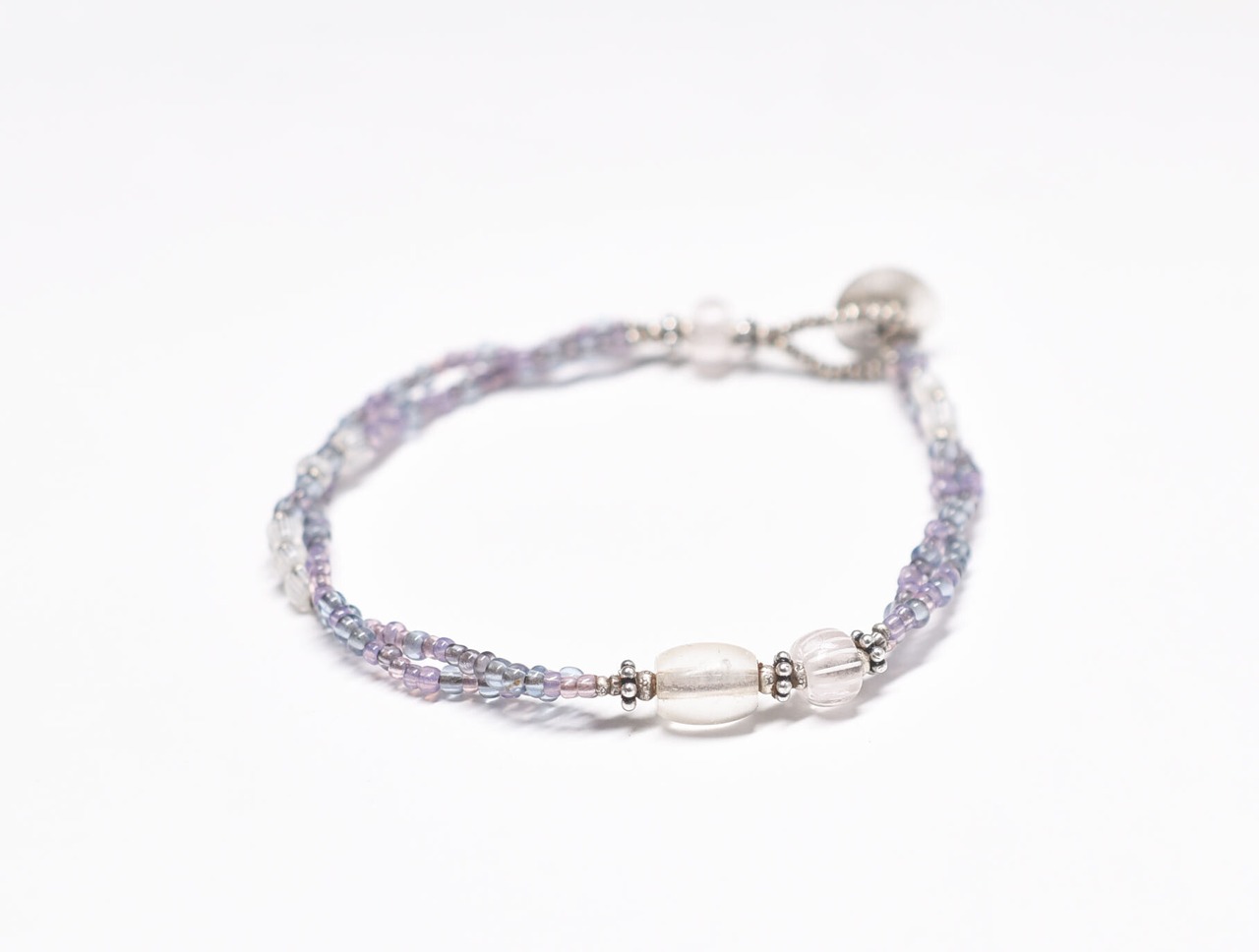 クリアボヘミアビーズとグーズベリー、フランスのヴィンテージビーズ、カレンシルバーなどを繋いだ2連のブレスです。