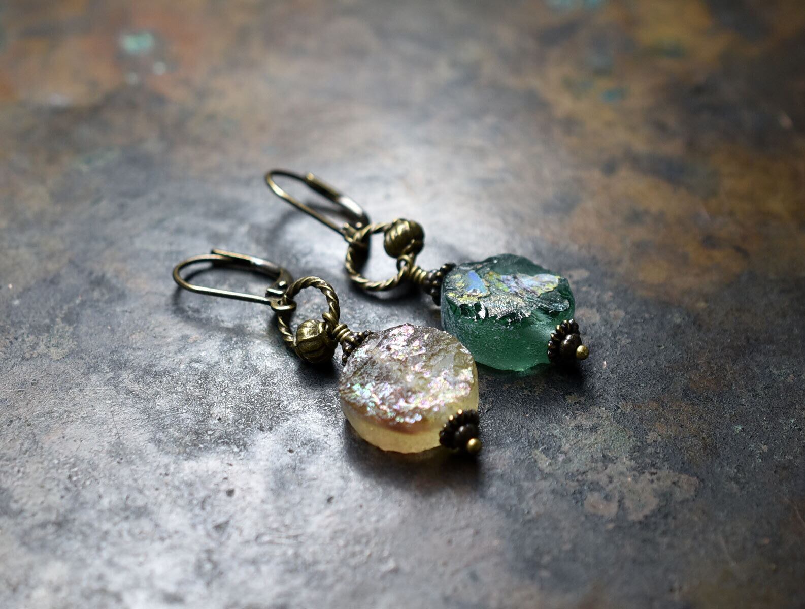 銀化の輝きがなくなっても古代のガラス自体の色を楽しめますので、育てる感覚で身に着けていただければ嬉しいです。