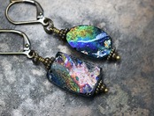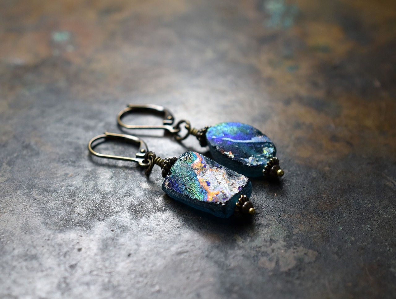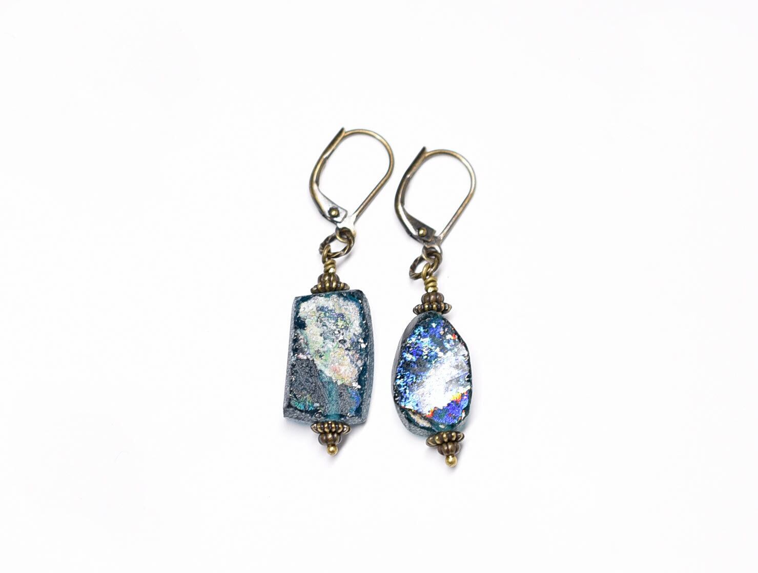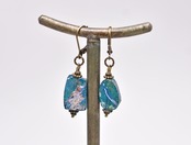 ブルーグリーンの美しい銀化ローマングラスのピアス