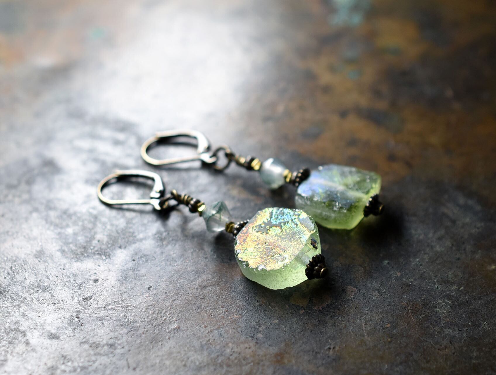 銀化の輝きがなくなっても古代のガラス自体の色を楽しめますので、育てる感覚で身に着けていただければ嬉しいです。