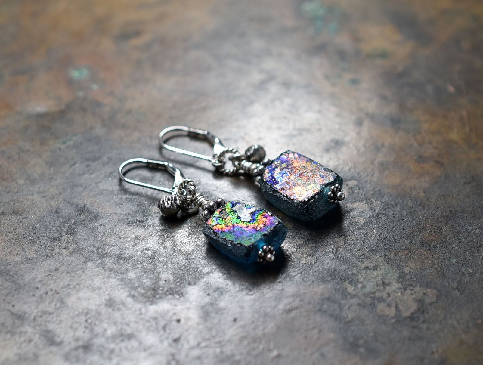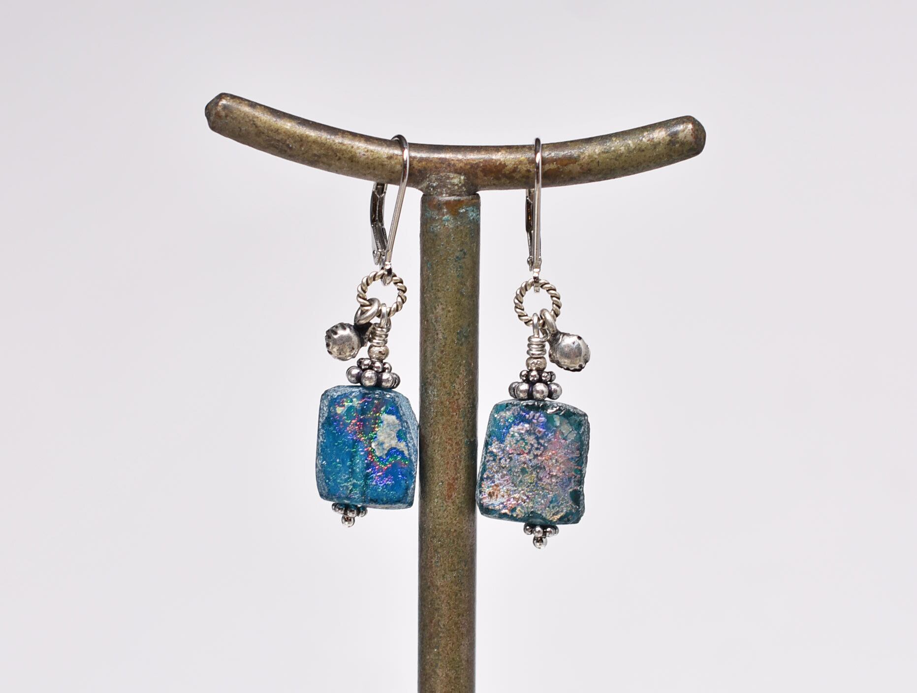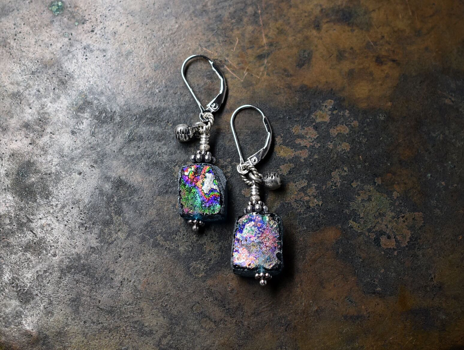 銀化の輝きがなくなっても古代のガラス自体の色を楽しめますので、育てる感覚で身に着けていただければ嬉しいです。