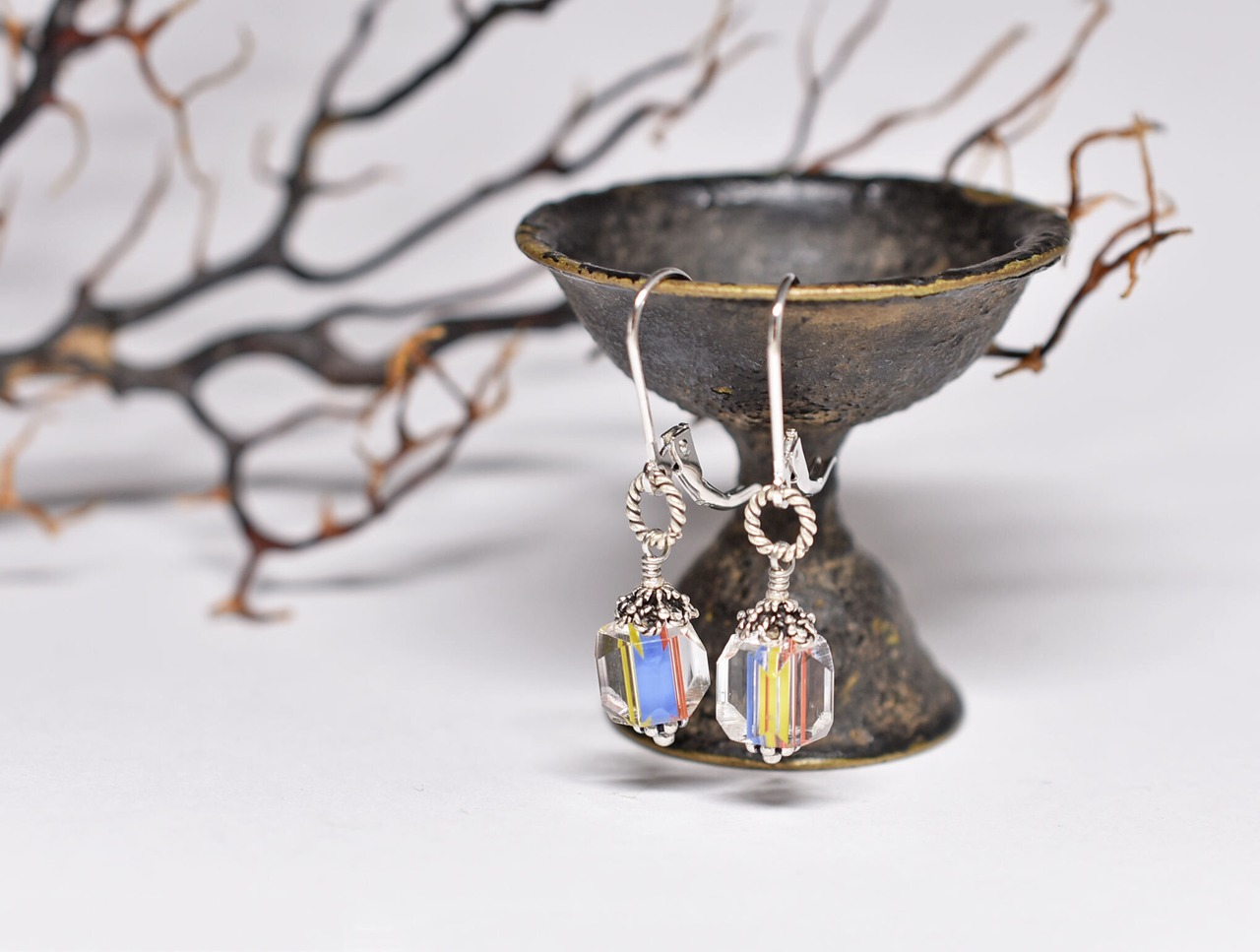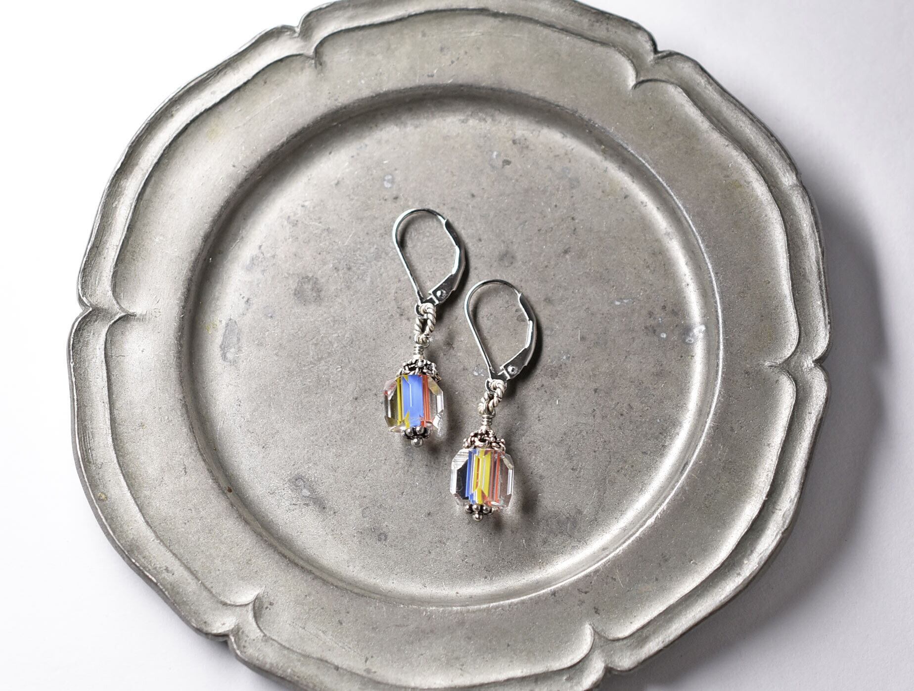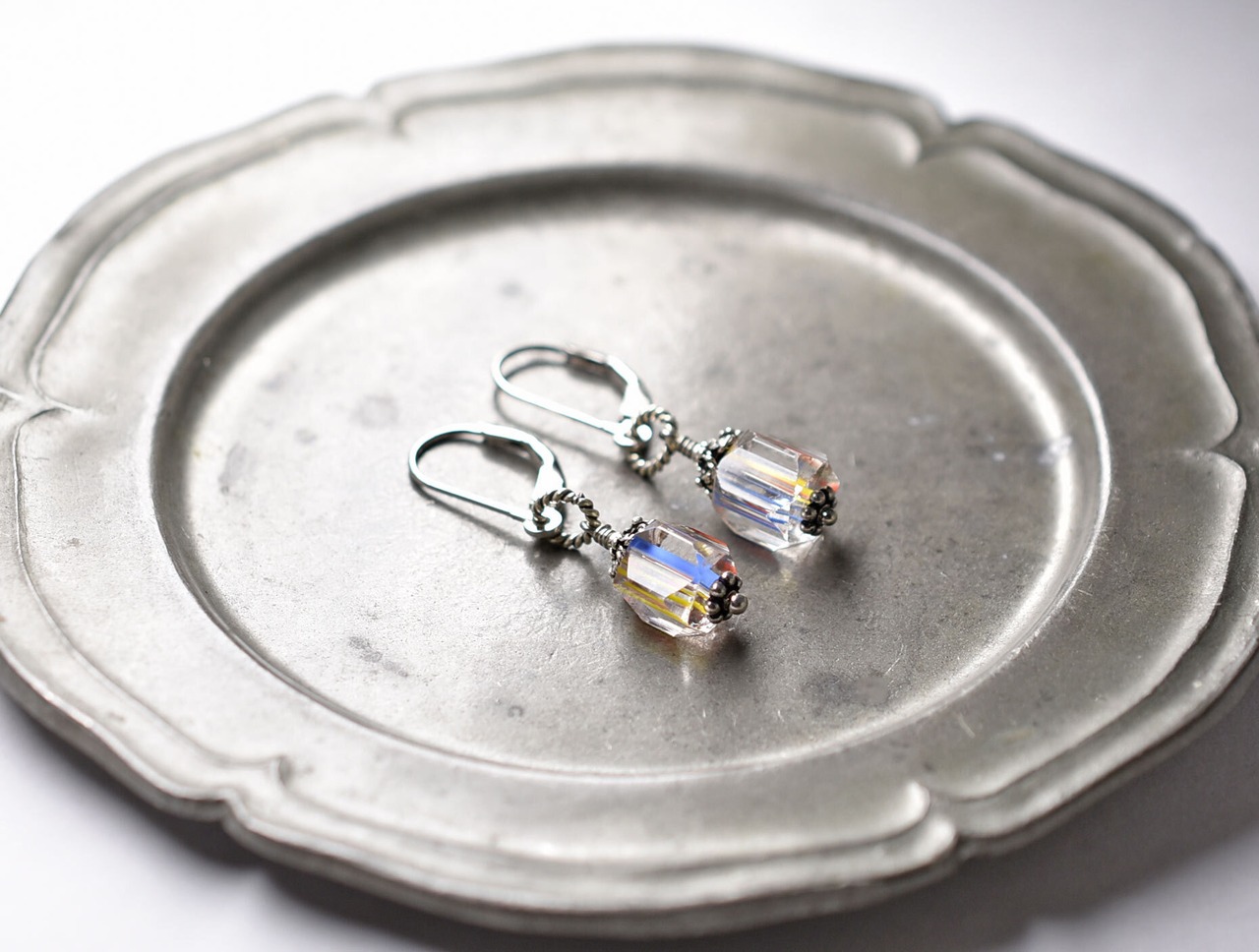 カットが美しいヴィンテージビーズを繋いだ小さなピアスです。