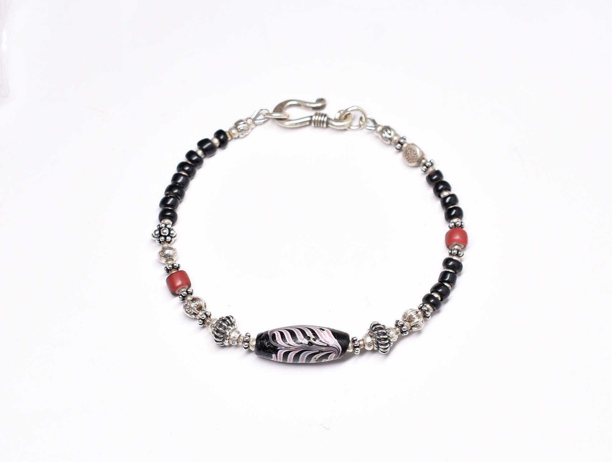 ヴェネチアンガラスとカレンシルバーを楽しめる、カッコ良いブレスです。