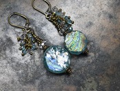ソーダブルー銀化ローマングラスとたわわなアパタイト、クォーツ、ハーキマーダイヤモンドのピアス