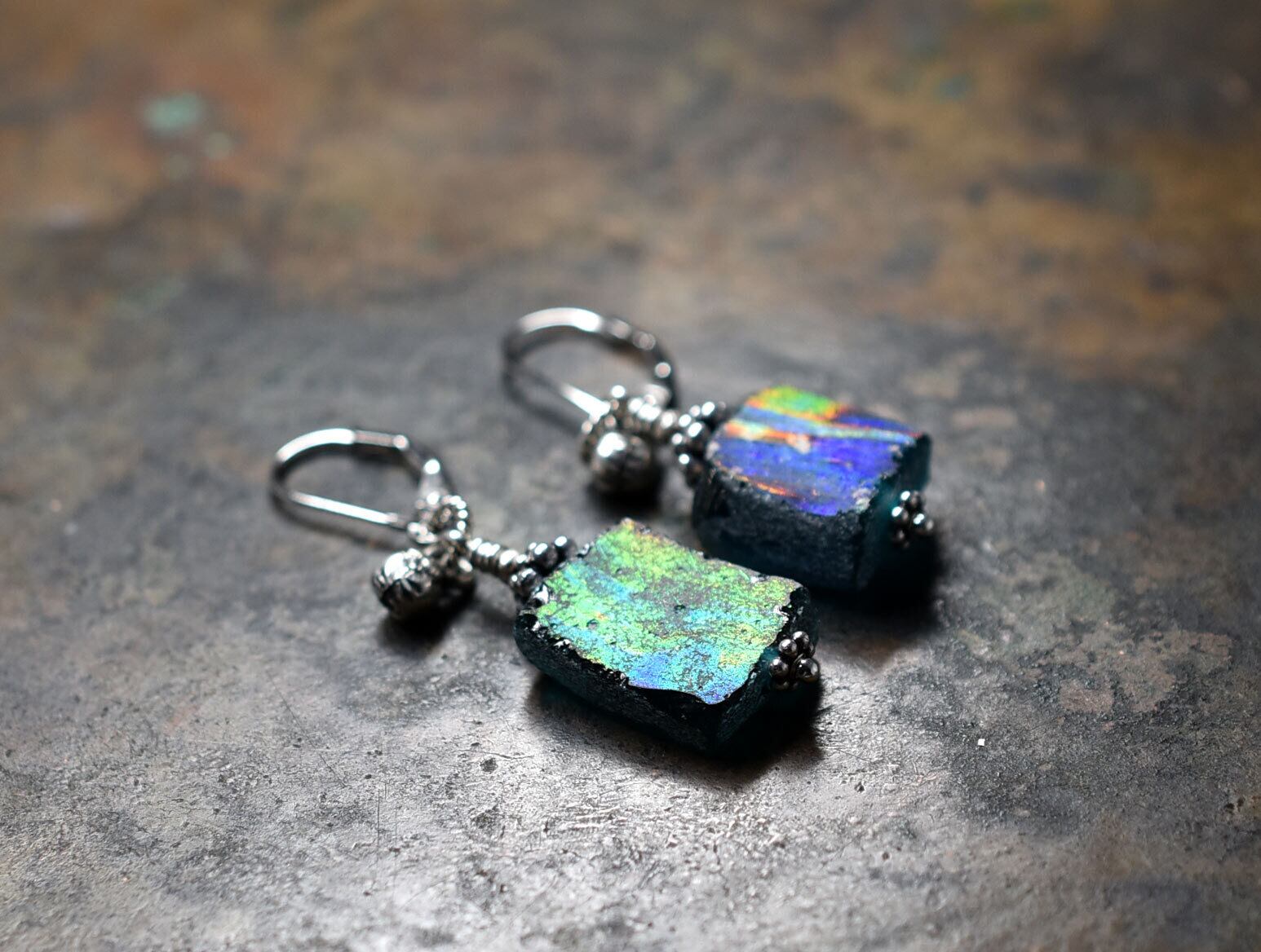 銀化の輝きがなくなっても古代のガラス自体の色を楽しめますので、育てる感覚で身に着けていただければ嬉しいです。