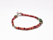 oldチベタンターコイズと古代施釉水晶、oldチンシルバー、血赤&金赤ホワイトハーツのブレス