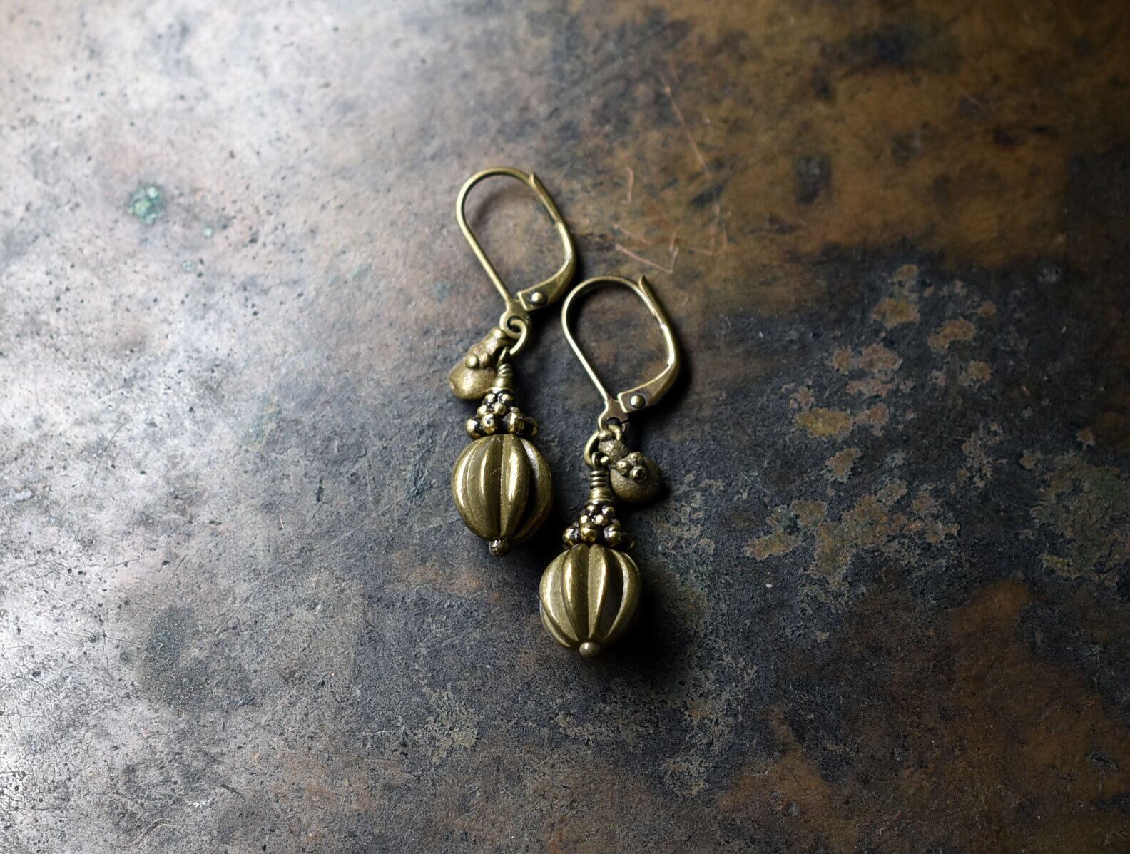 スラウェシ島oldブラスとoldオリッサブラスチャームのピアス