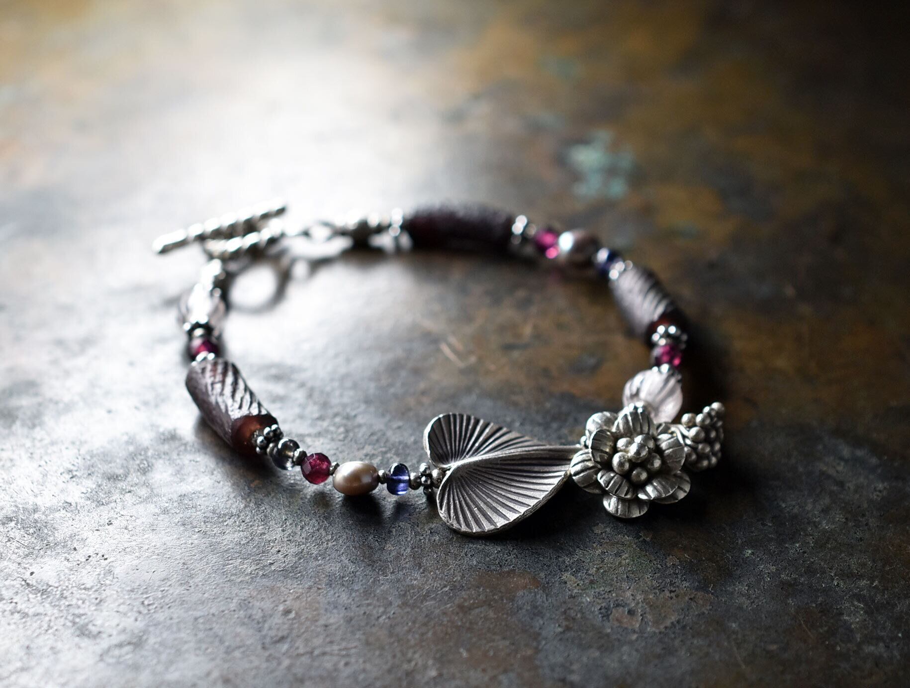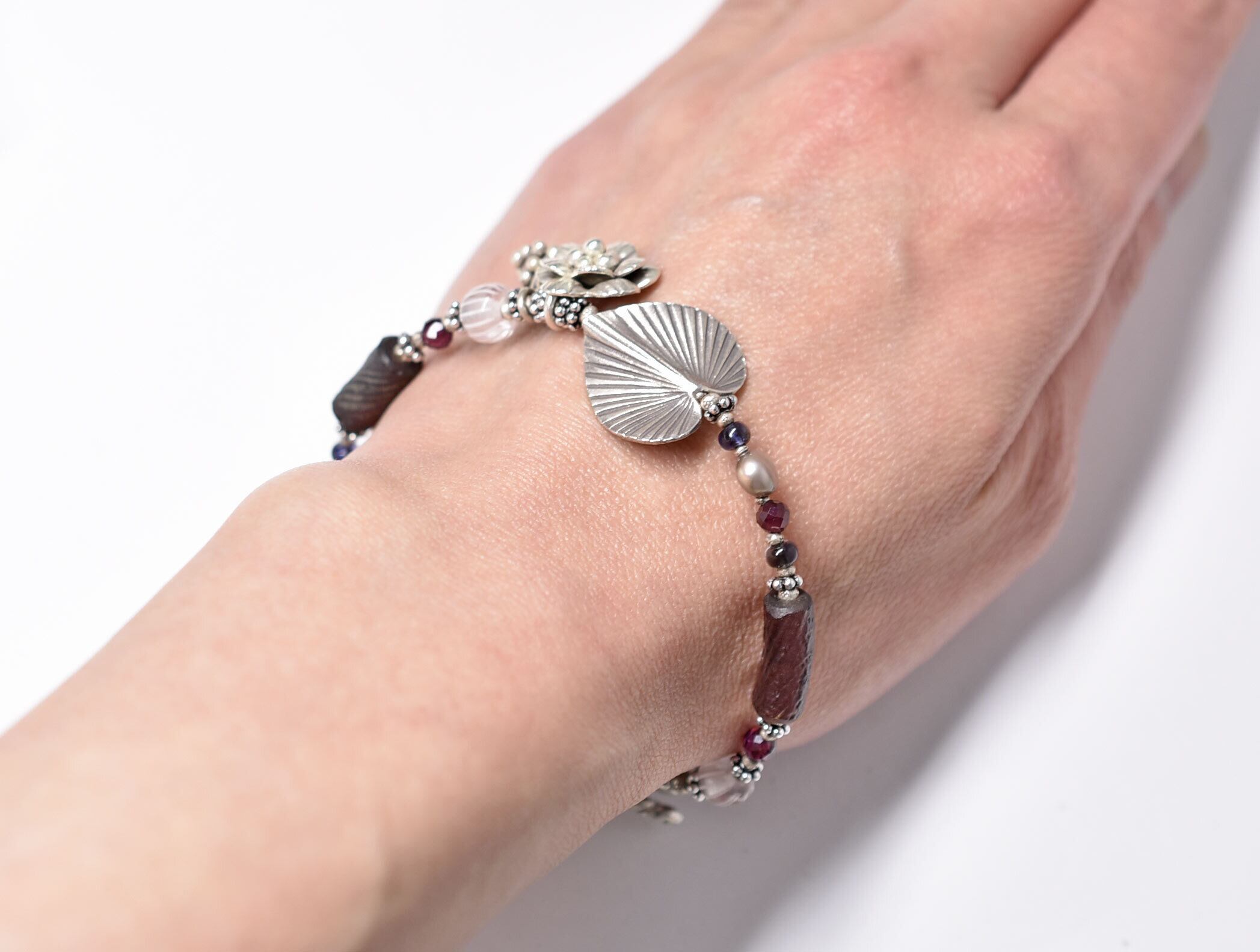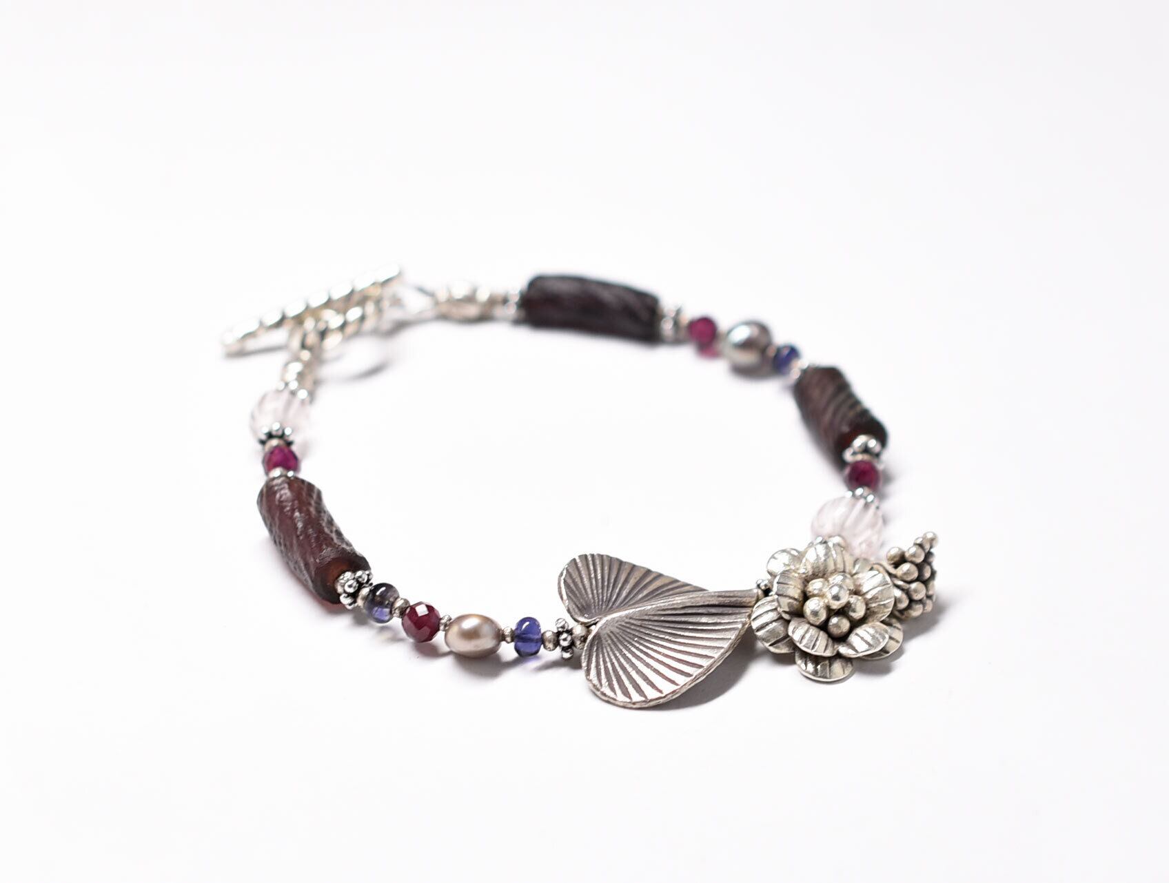 ボタニカルなカレンシルバーとパローマングラス、グーズベリー、ストーンビーズのブレス