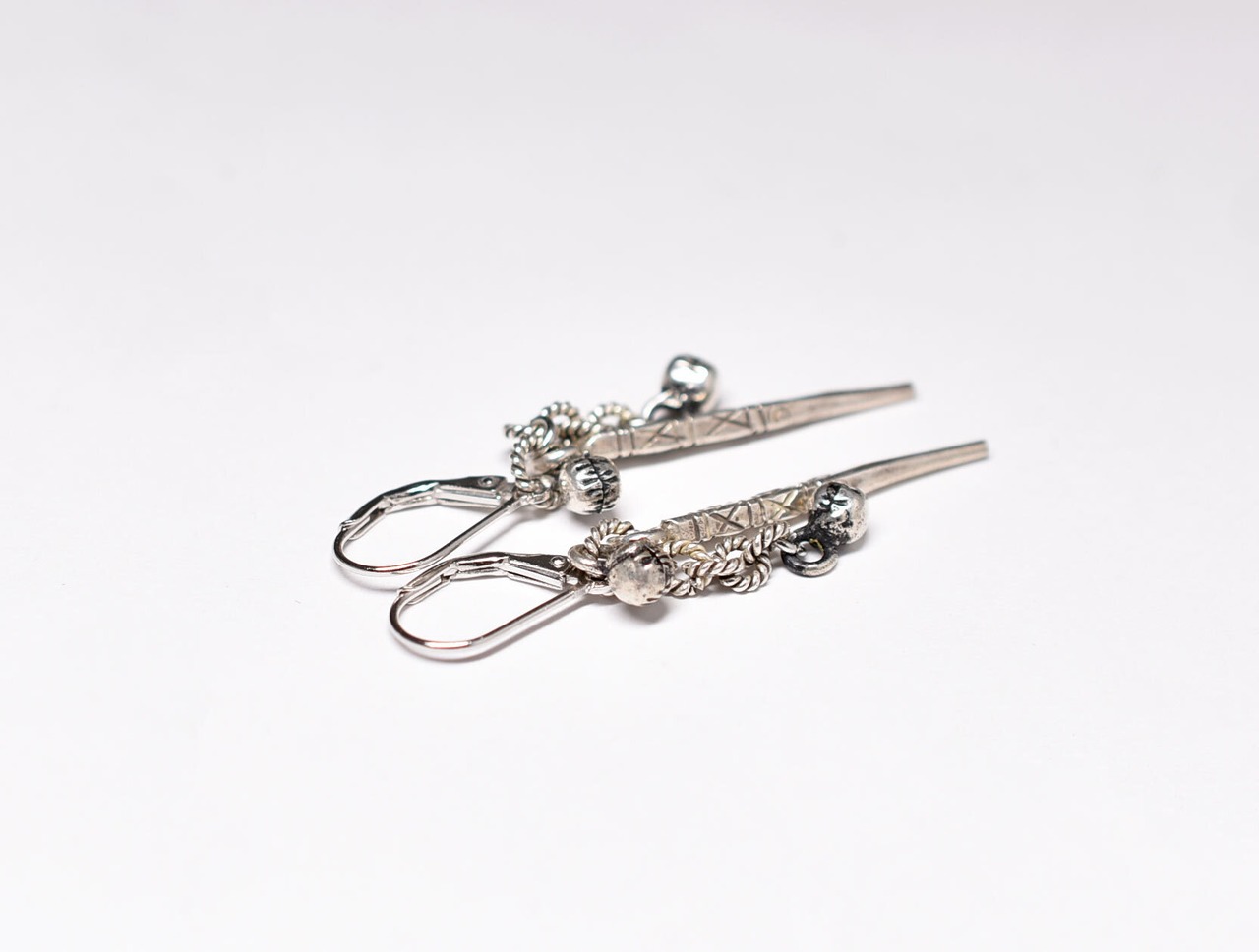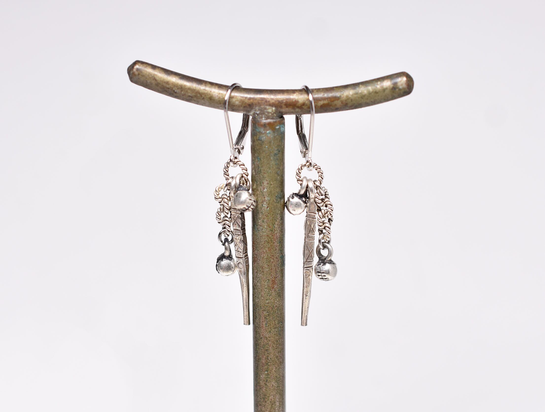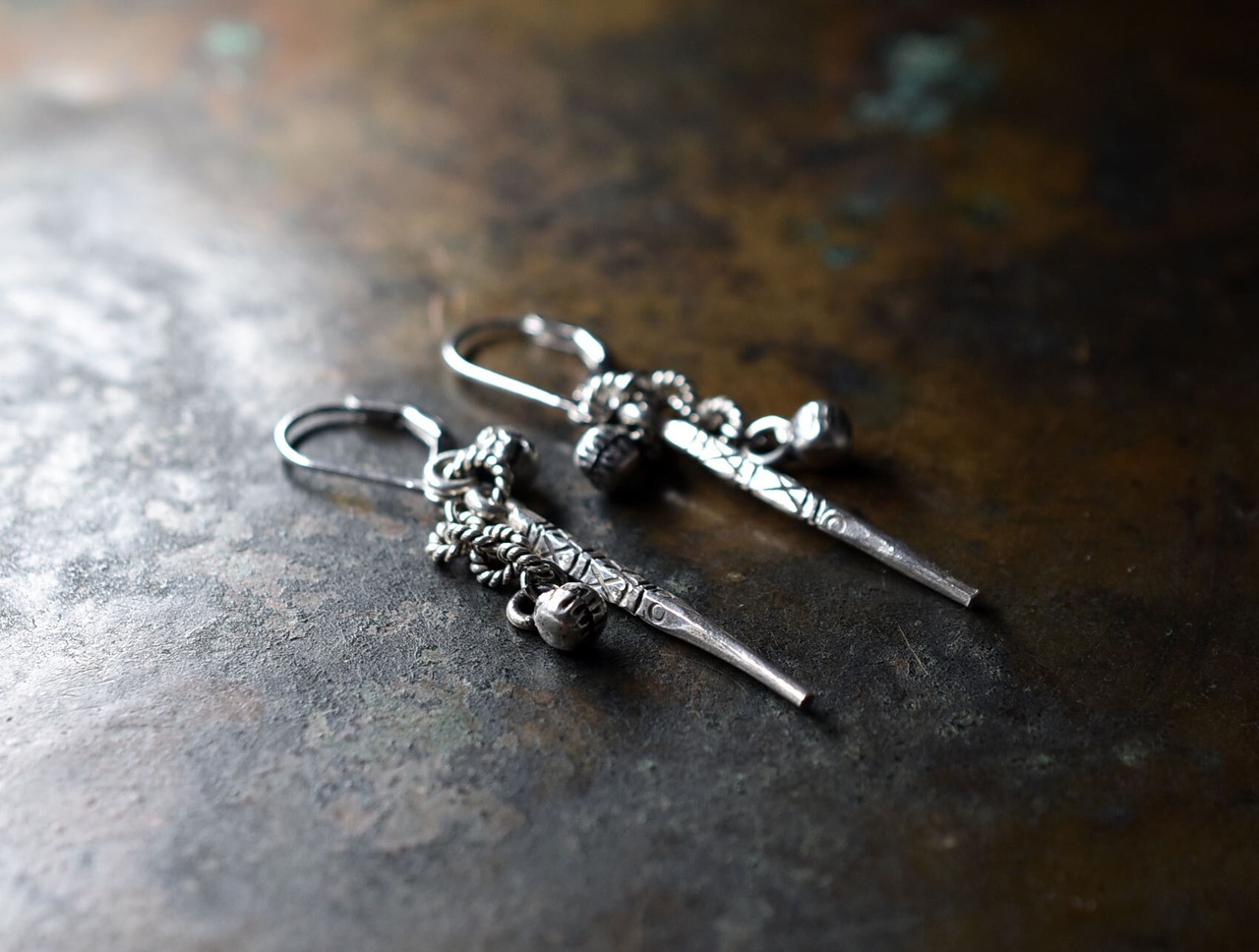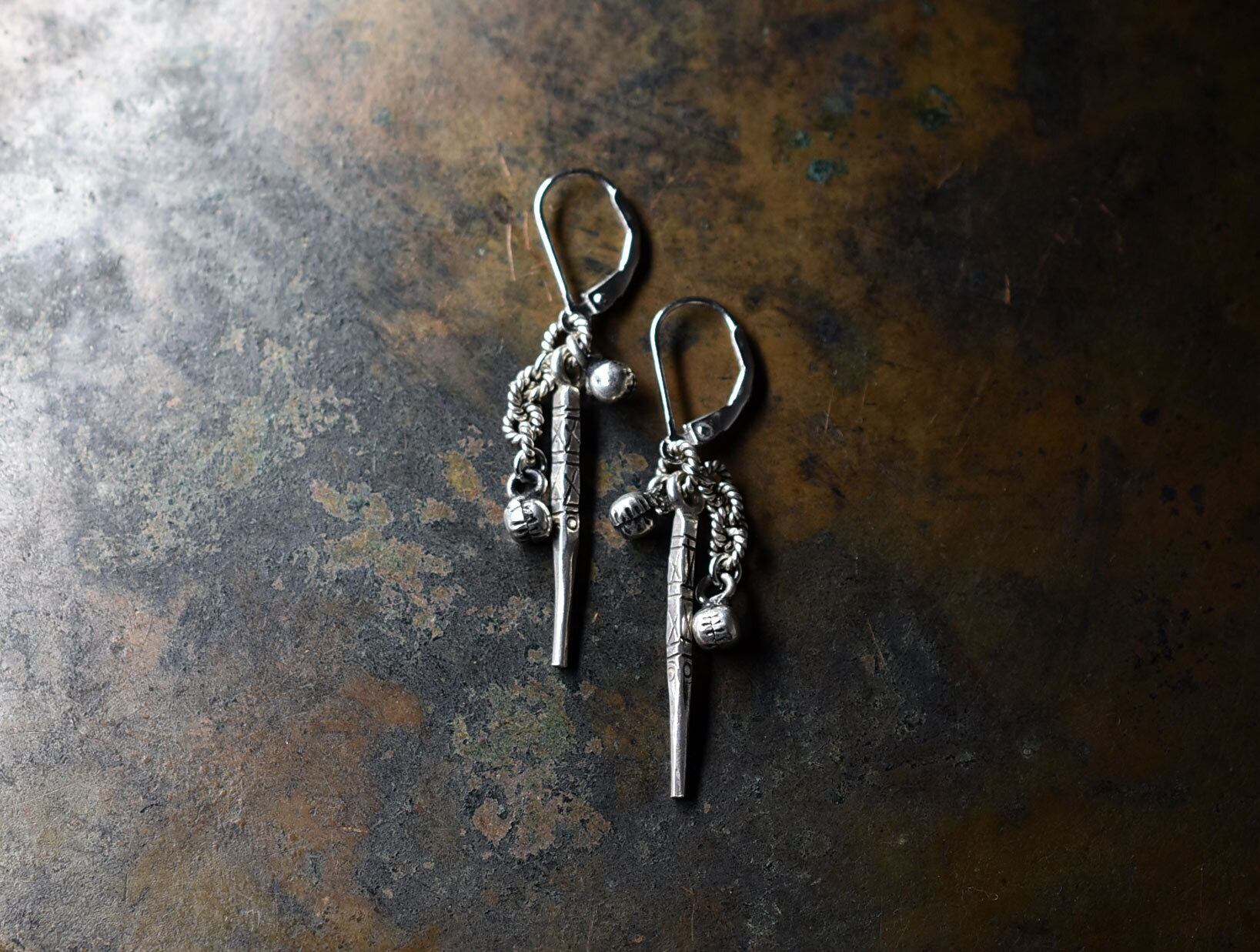 楔カレンシルバーとインドシルバーの鈴のピアス