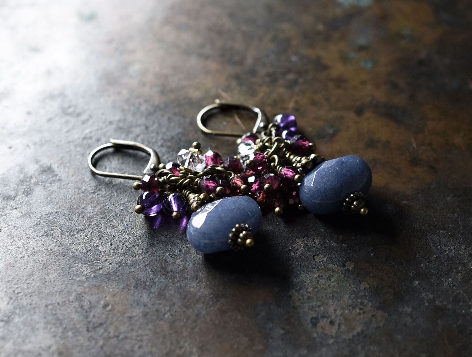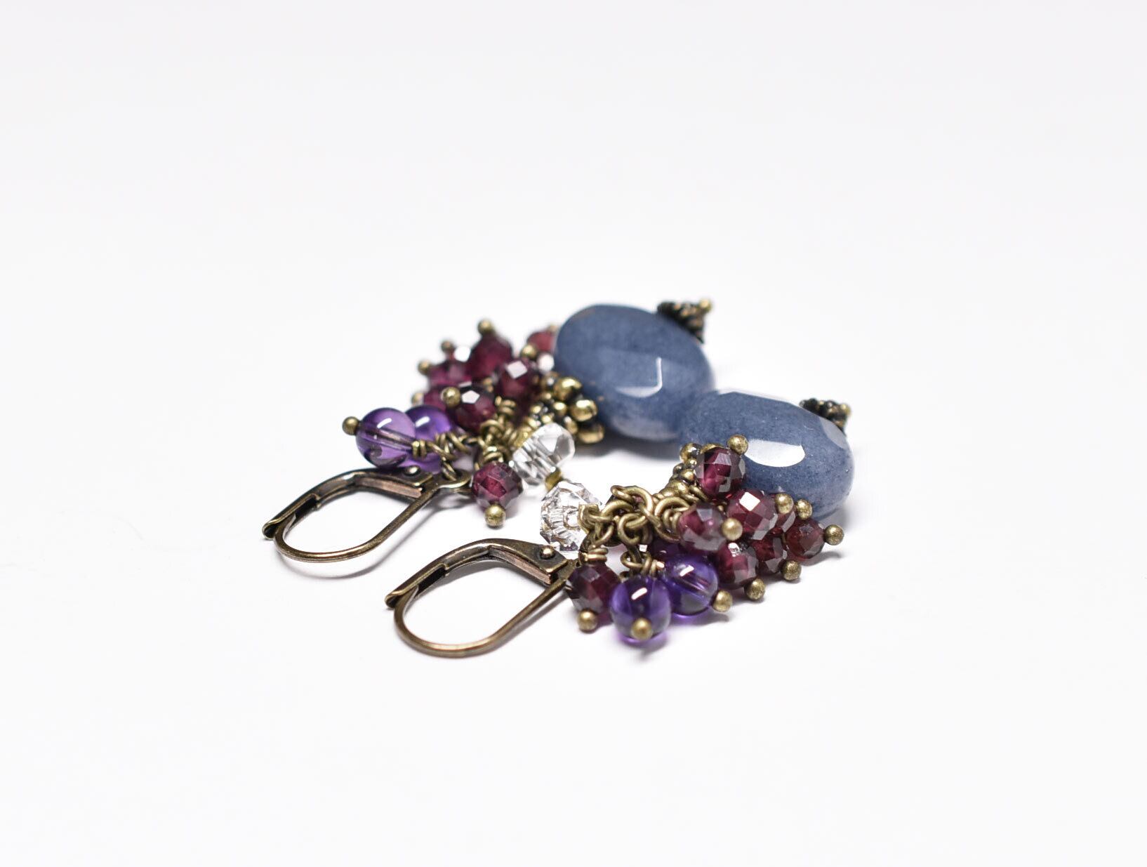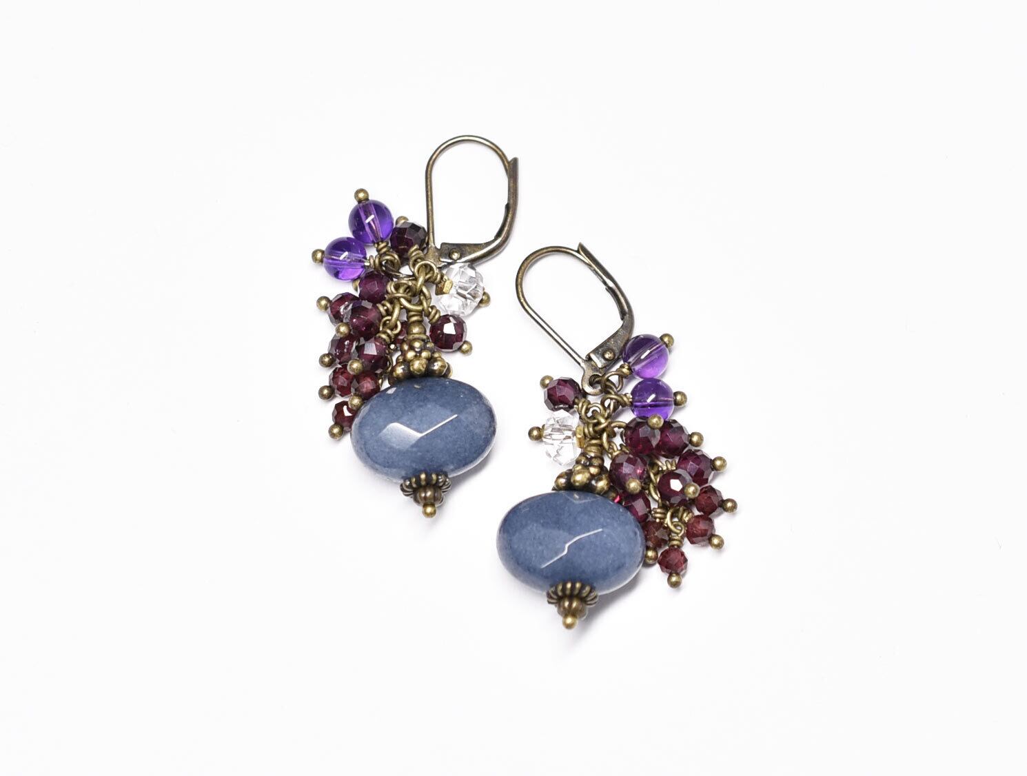 サファイアアゲートとたわわなガーネット、クォーツ、アメジストのピアス