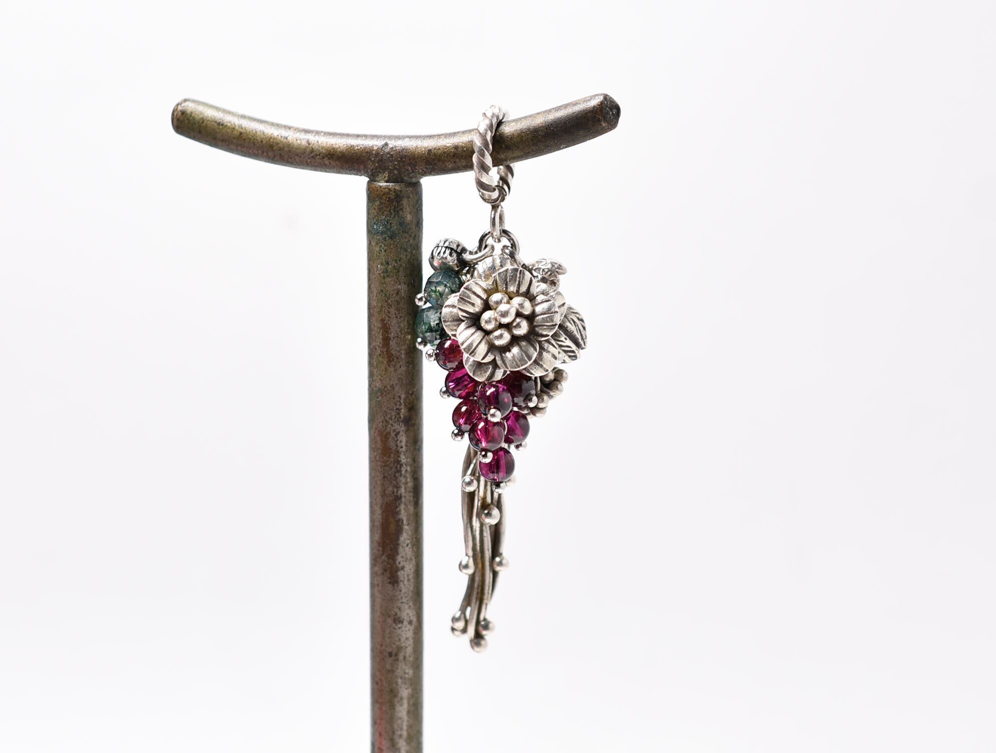 蔦やお花、蕾カレンシルバーとたわわなガーネットとモスアゲートのペンダントトップ