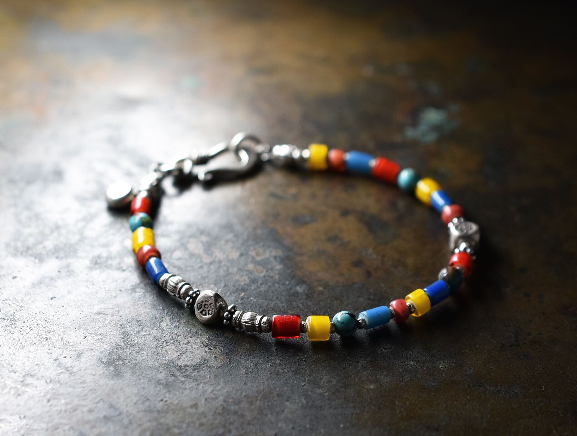 シルバーアクセサリーとの相性もばっちりのブレスです。