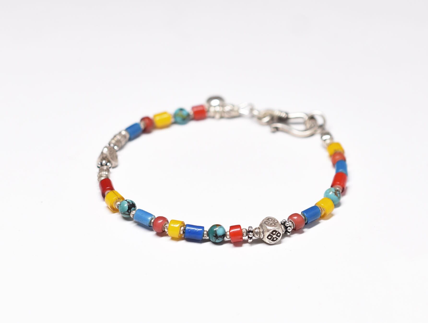 カラフルホワイトハーツとターコイズ、カレンシルバーのブレス