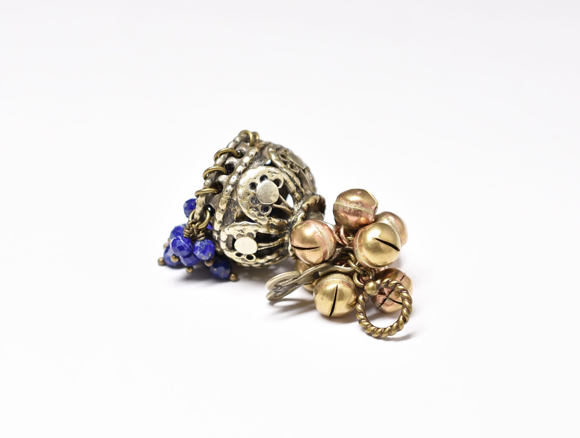 「A様専用」クチ族メタルとラピスラズリ、たわわな鈴のペンダントトップ