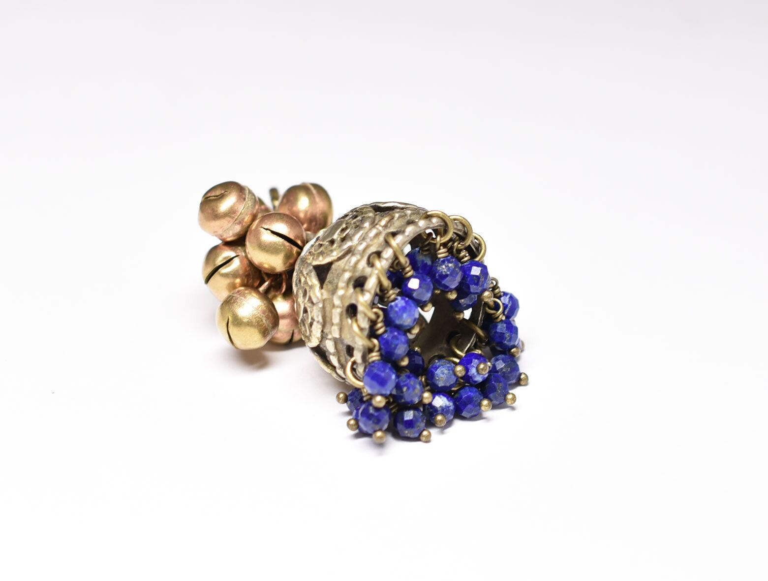クチ族メタルとラピス、たわわな鈴とアフガンメタルを繋いペンダントトップです。