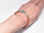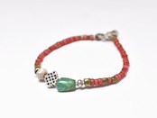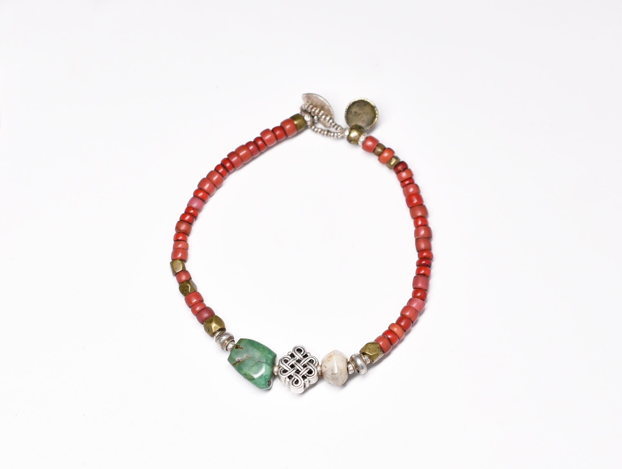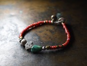 oldチベタンターコイズエンドレスノットと古代瑪瑙、金赤ミックスホワイトハーツのブレス