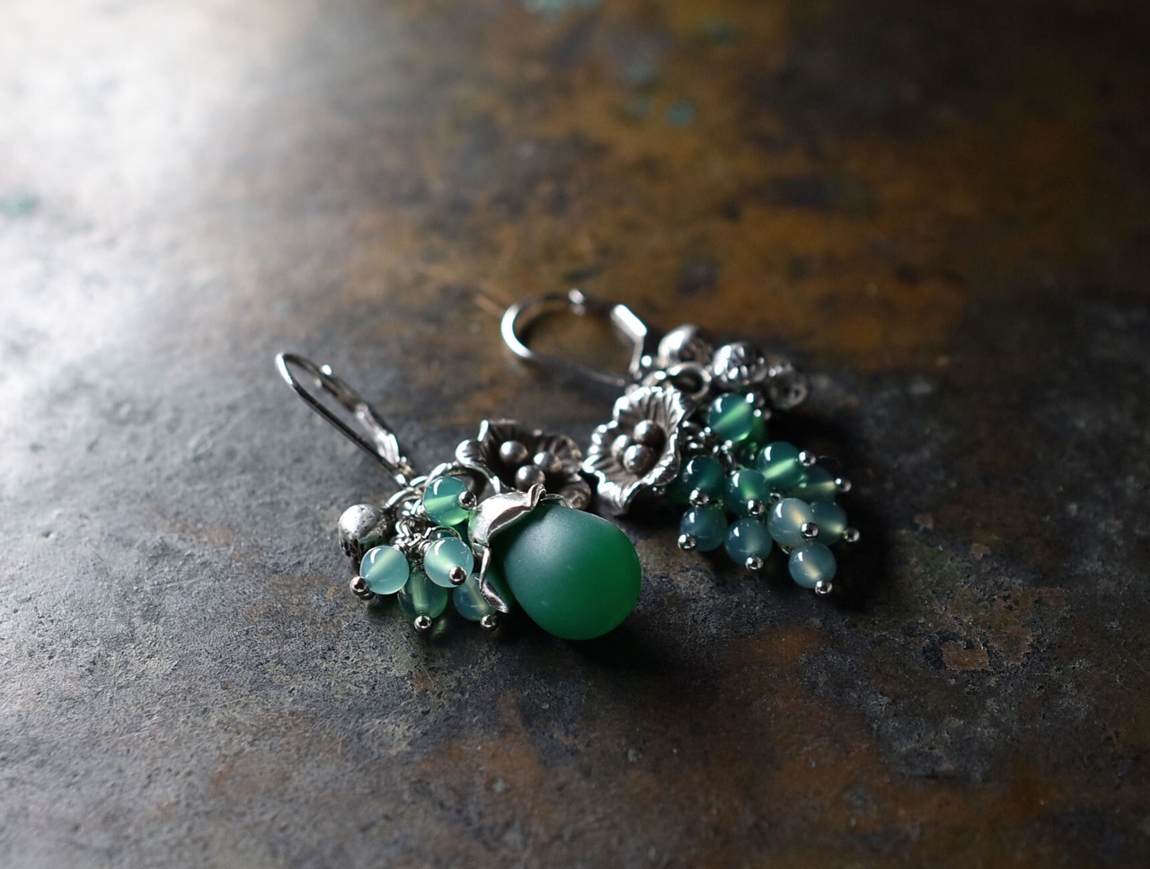素材:カレンシルバー、ガラス、グリーン瑪瑙、シルバー