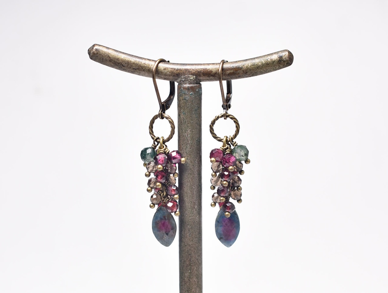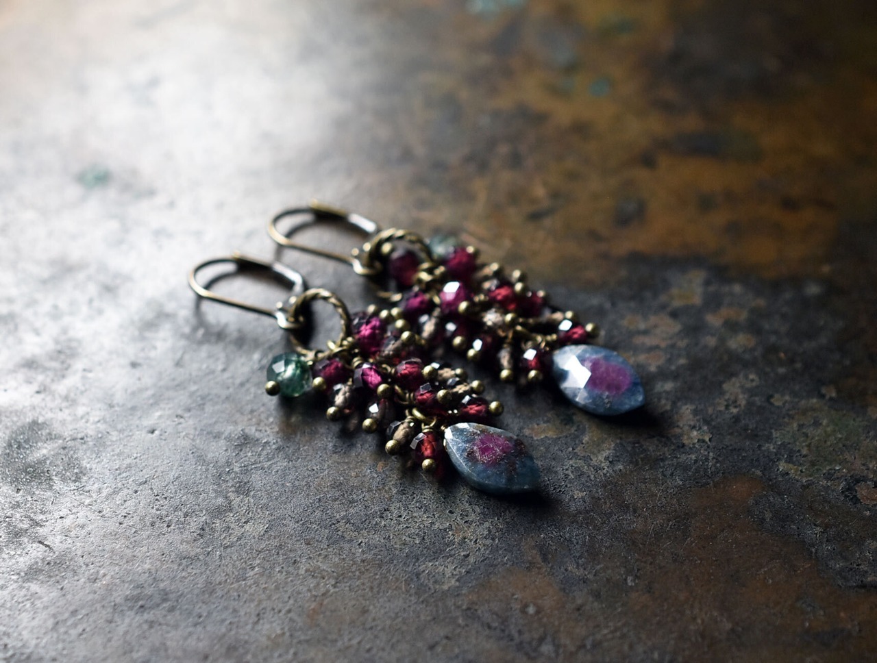 素材:ルビーインゾイサイト、ガーネット、スモーキークォーツ、モスアゲート、真鍮