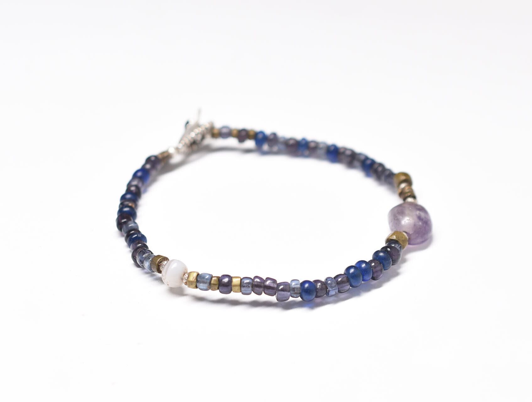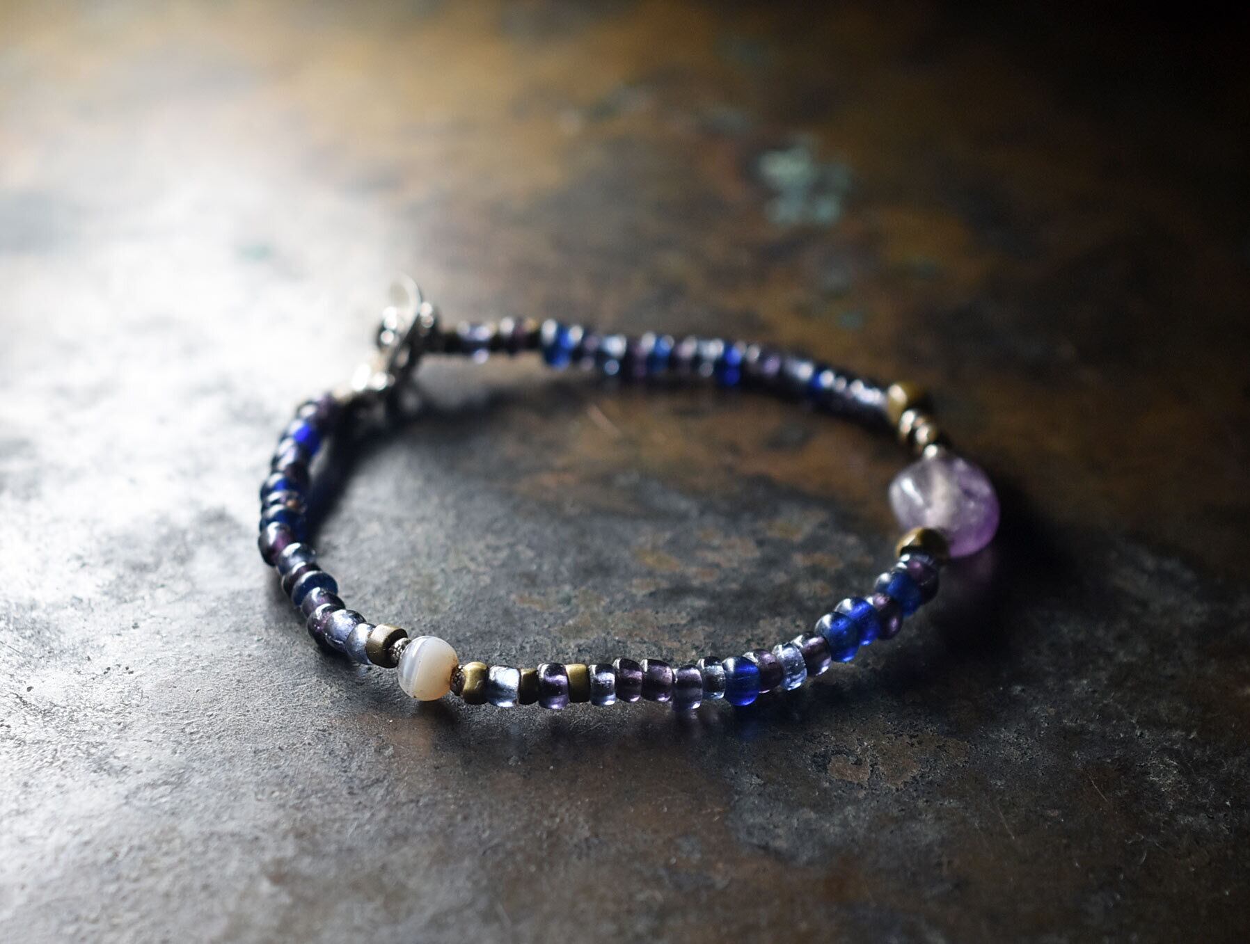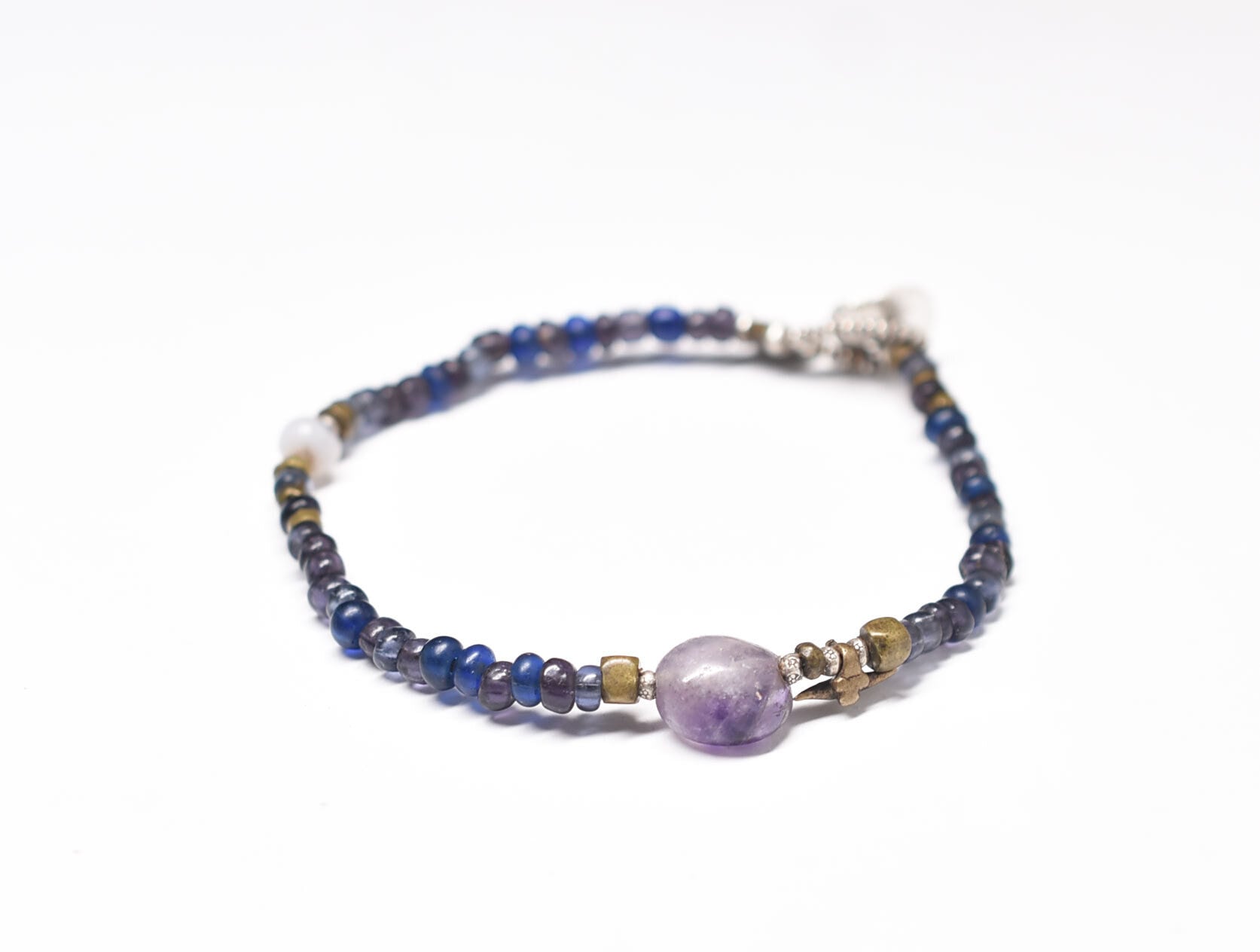 古代アメジストと古代瑪瑙、パープルミックス&ブルーアンティークビーズのブレス
