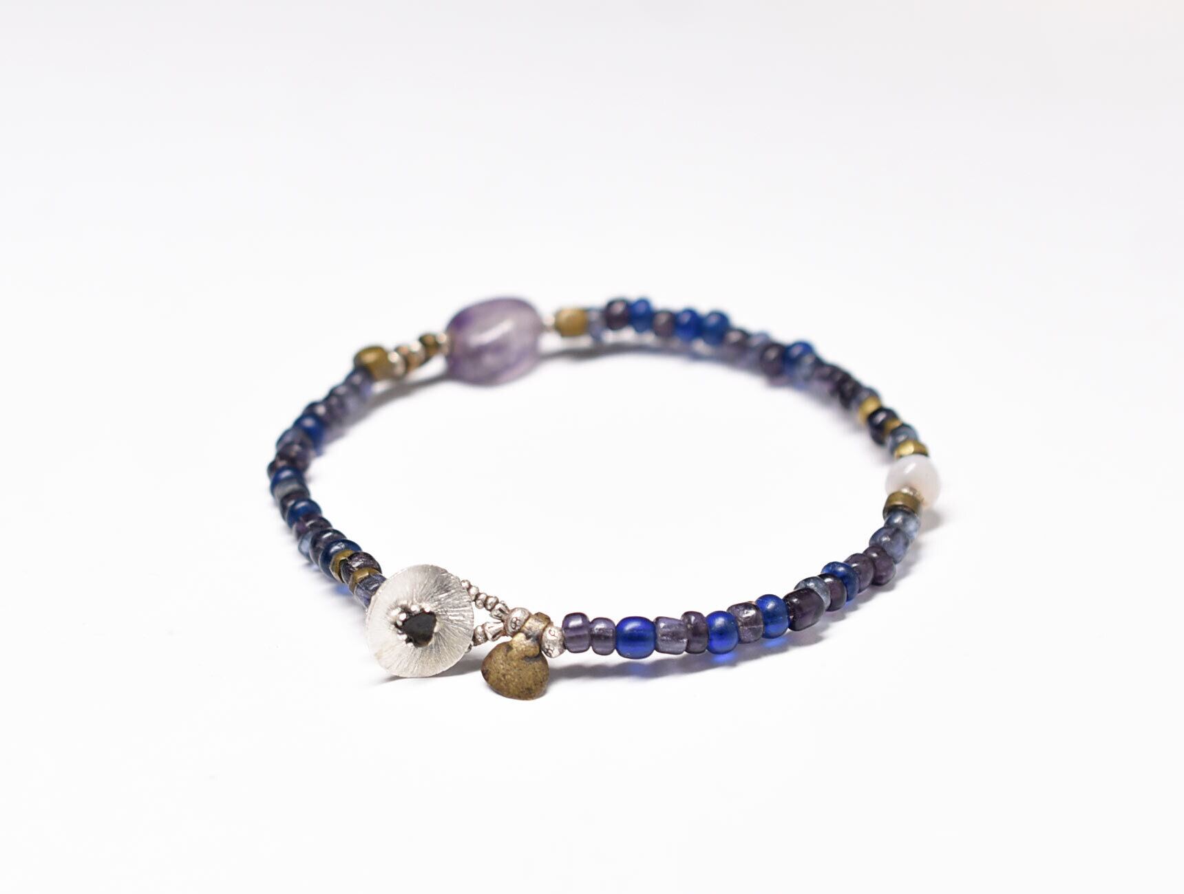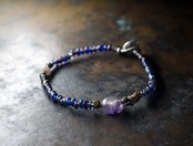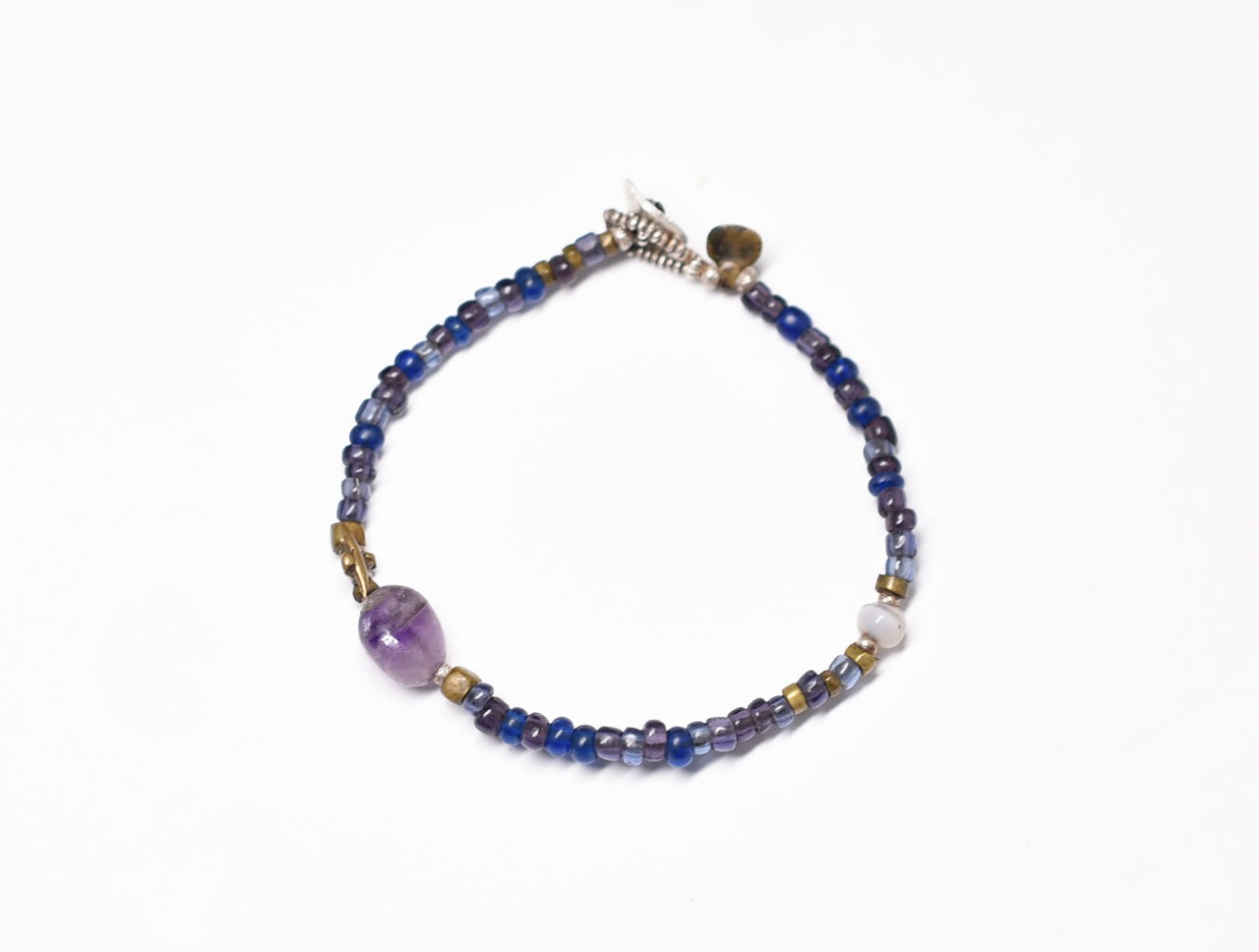 古代アメジストと古代瑪瑙、パープルミックス&ブルーアンティークビーズなどを繋いだブレスです。