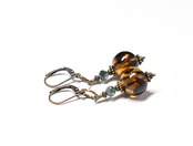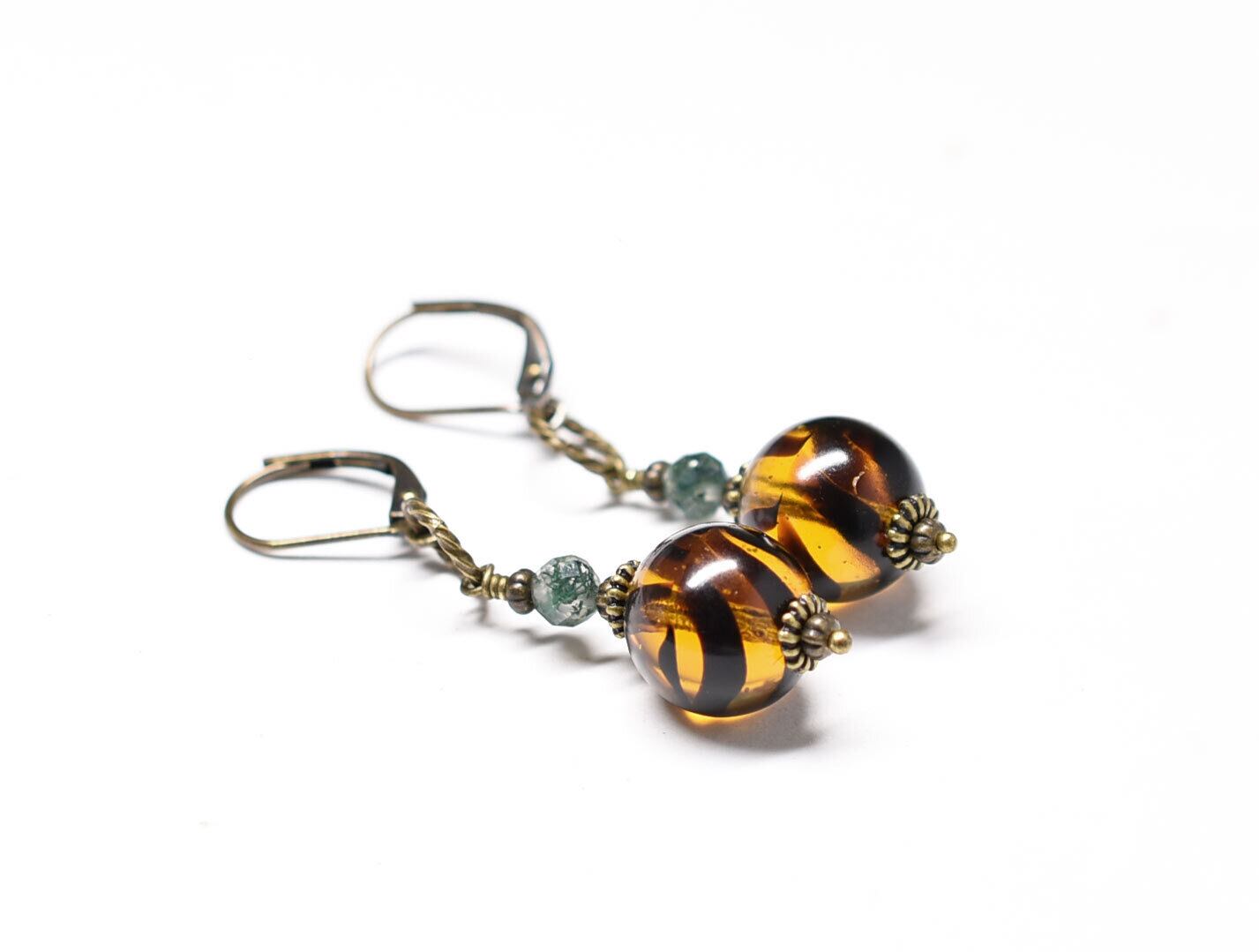 まん丸べっ甲色ドイツヴィンテージビーズとモスアゲートを繋いだピアスです。
