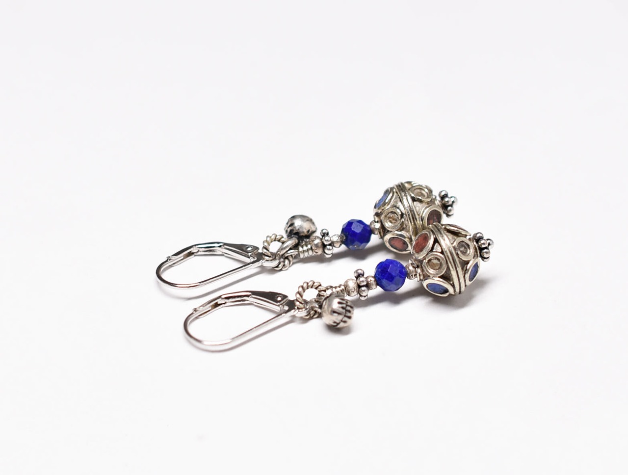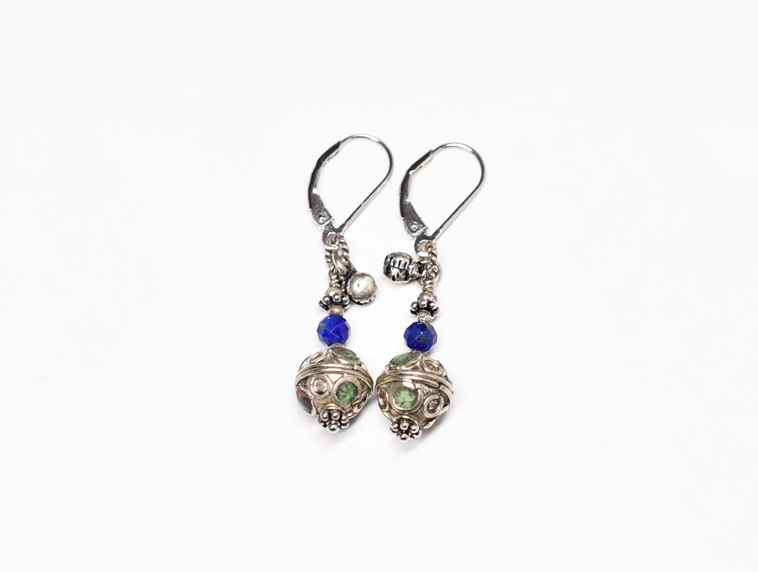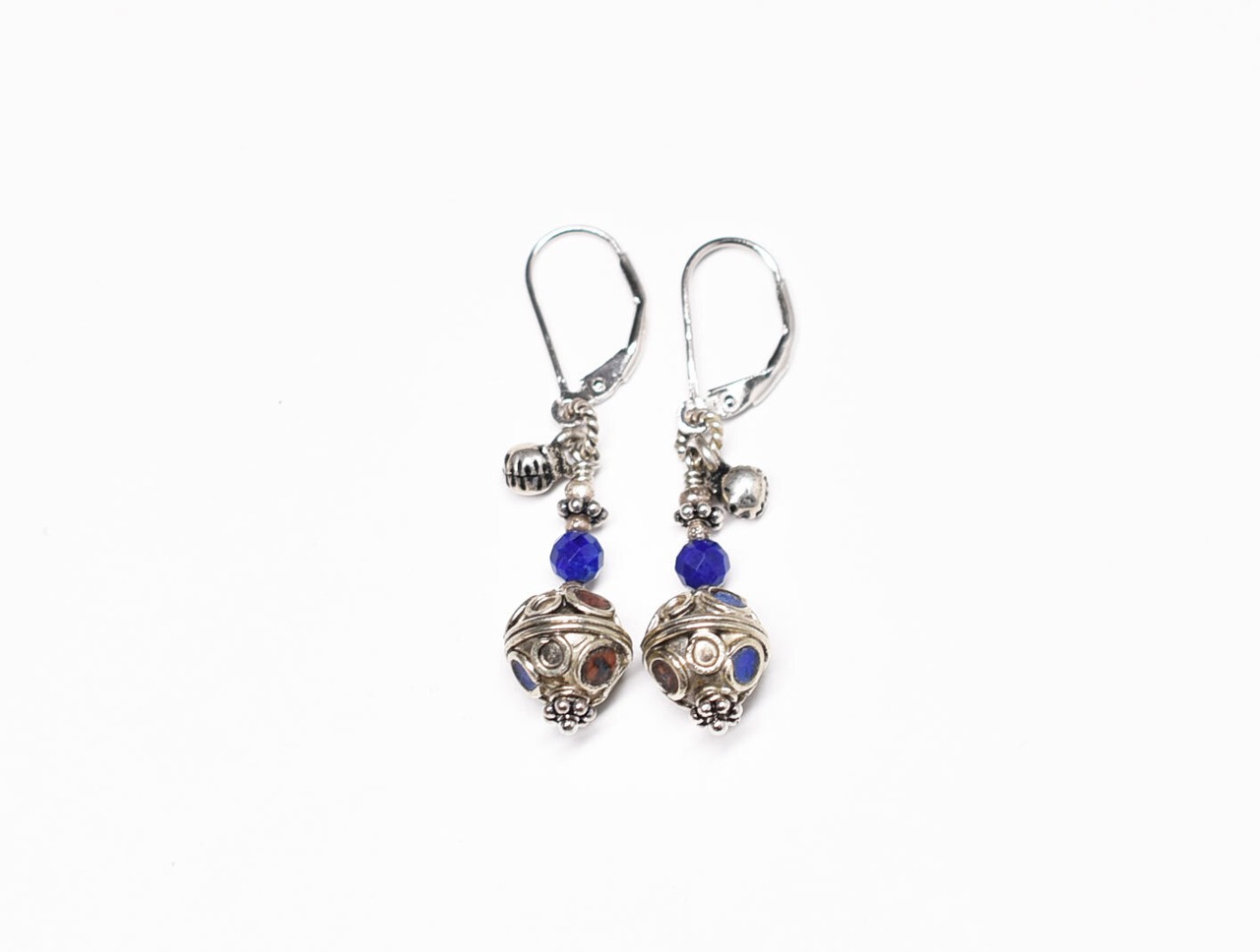 ベルベル族メタルパーツとラピスラズリ、小さなインドシルバー鈴のピアス
