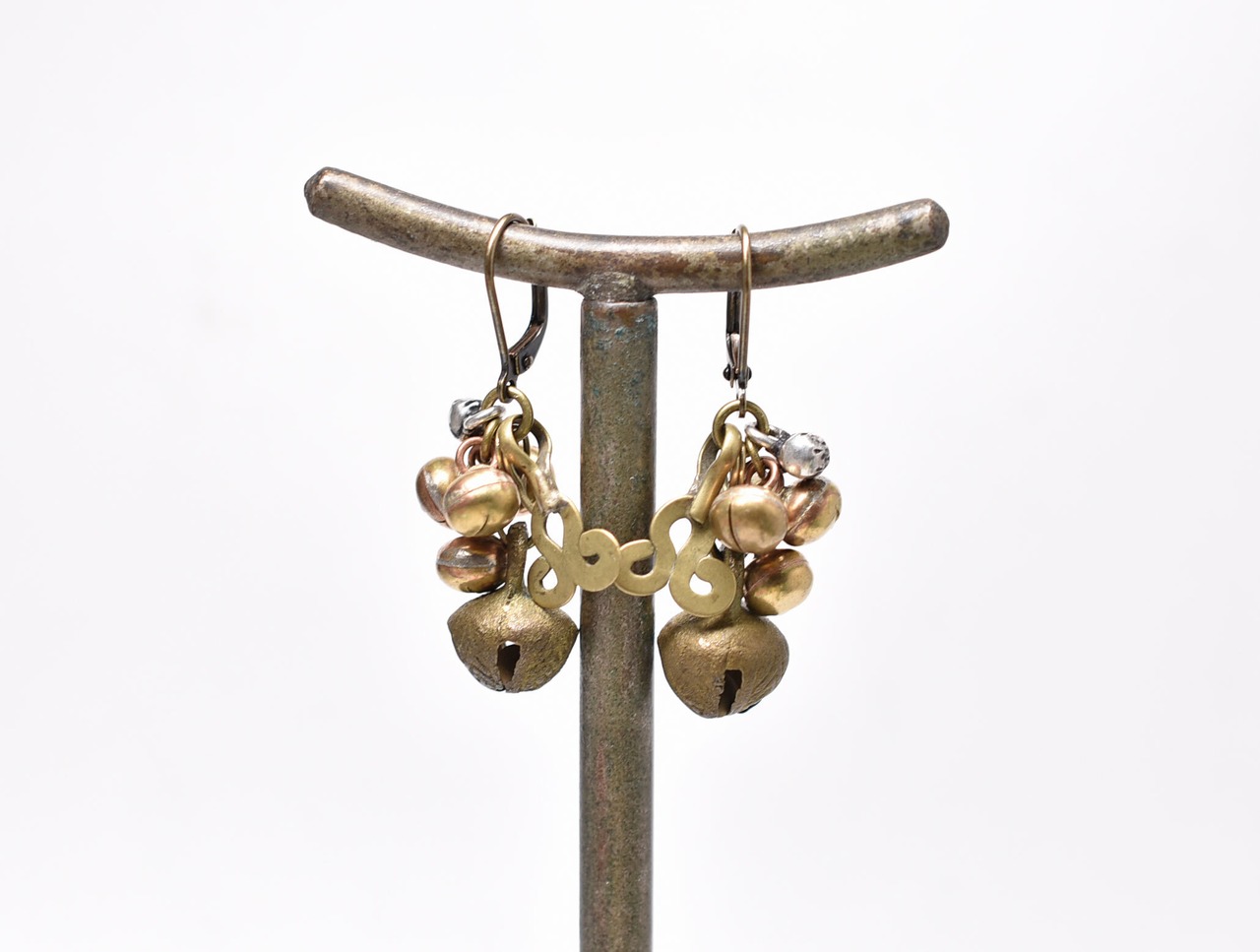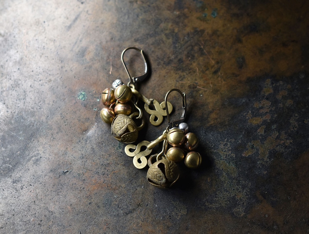 グングルと2種類の鈴、アフガンメタルパーツを繋いだピアスです。