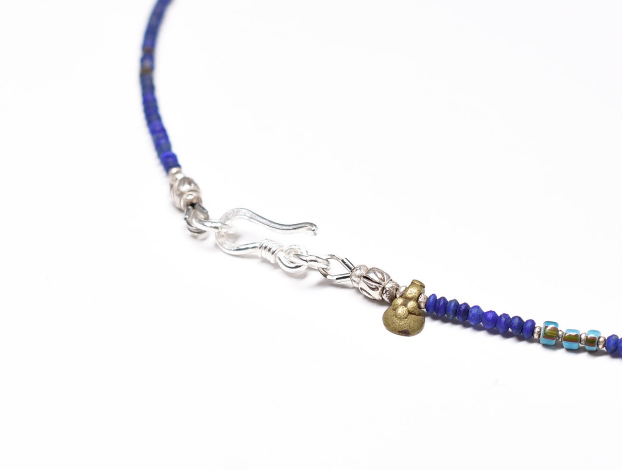 古代水晶と古代カーネリアン、ターコイズブルーホワイトハーツ、oldオリッサブラス、ラピスの華奢なネックレス