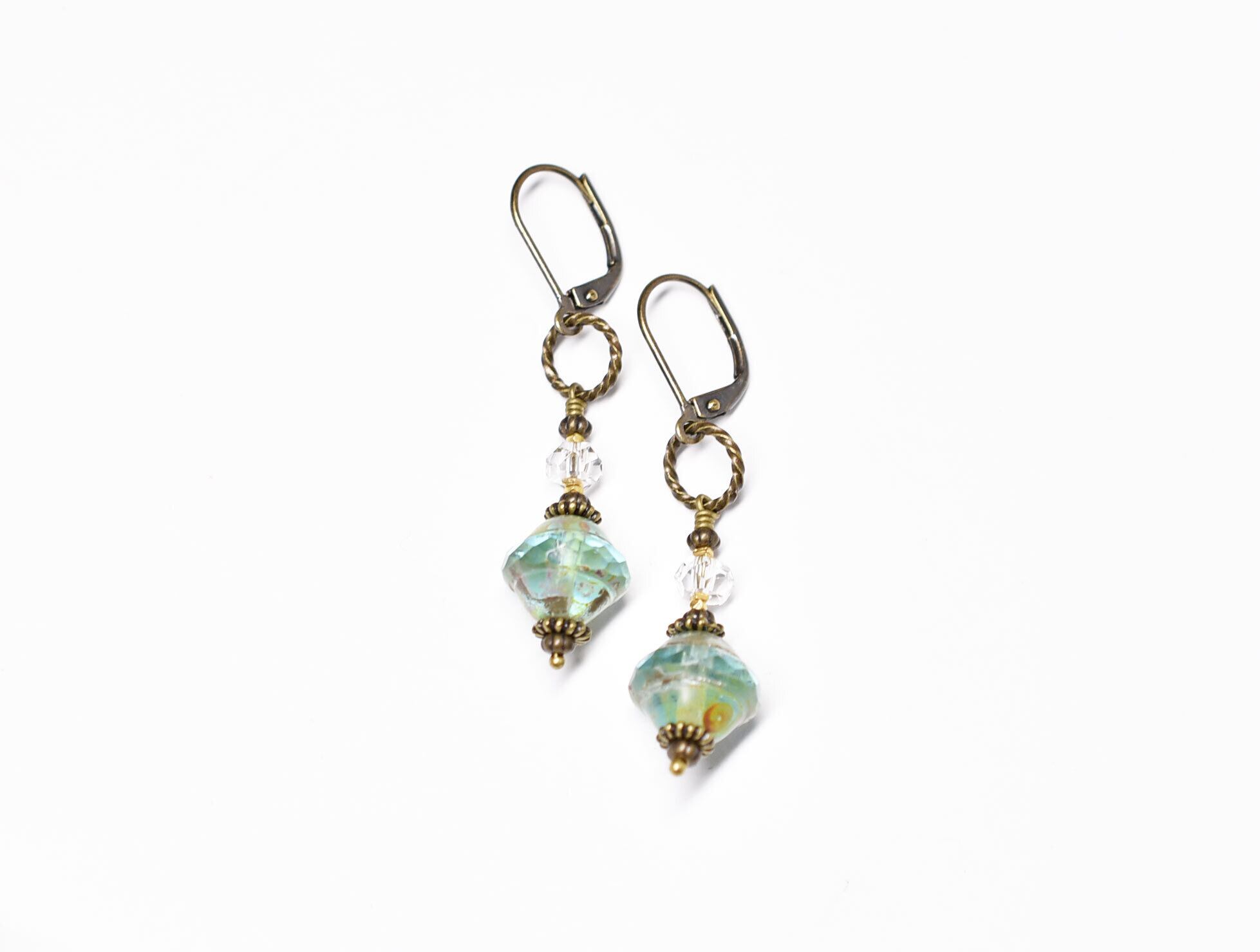 アクアブルーチェコビーズとクォーツのピアス