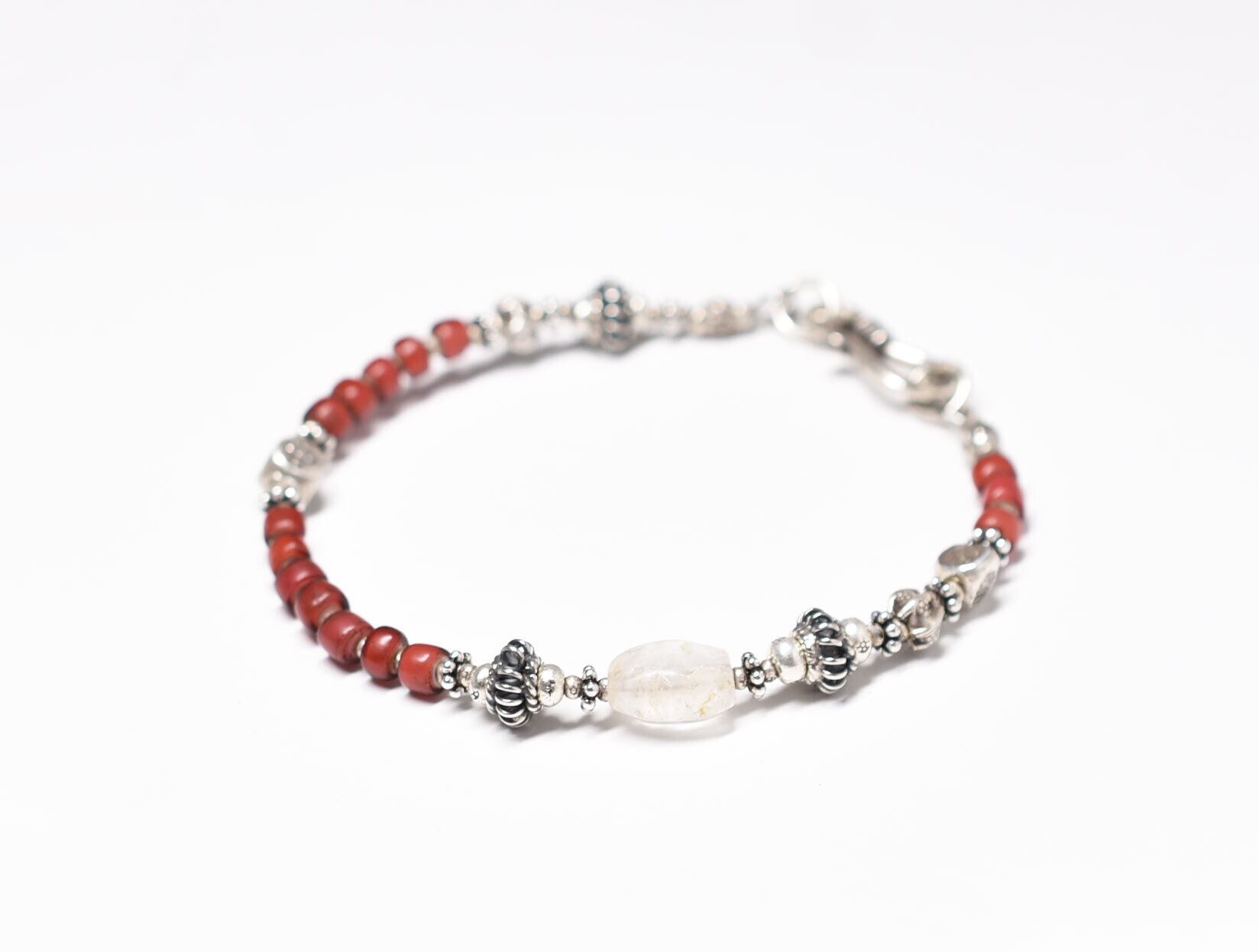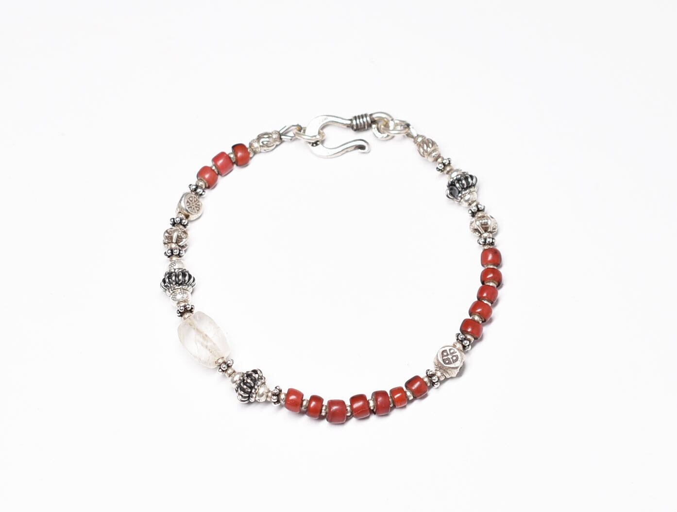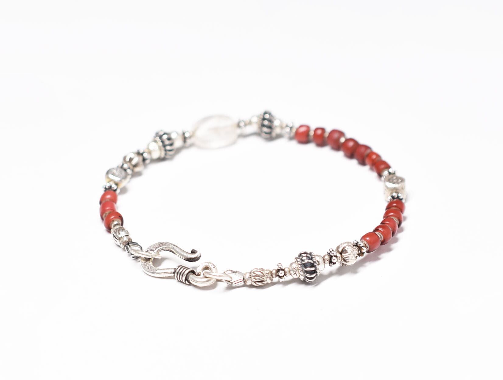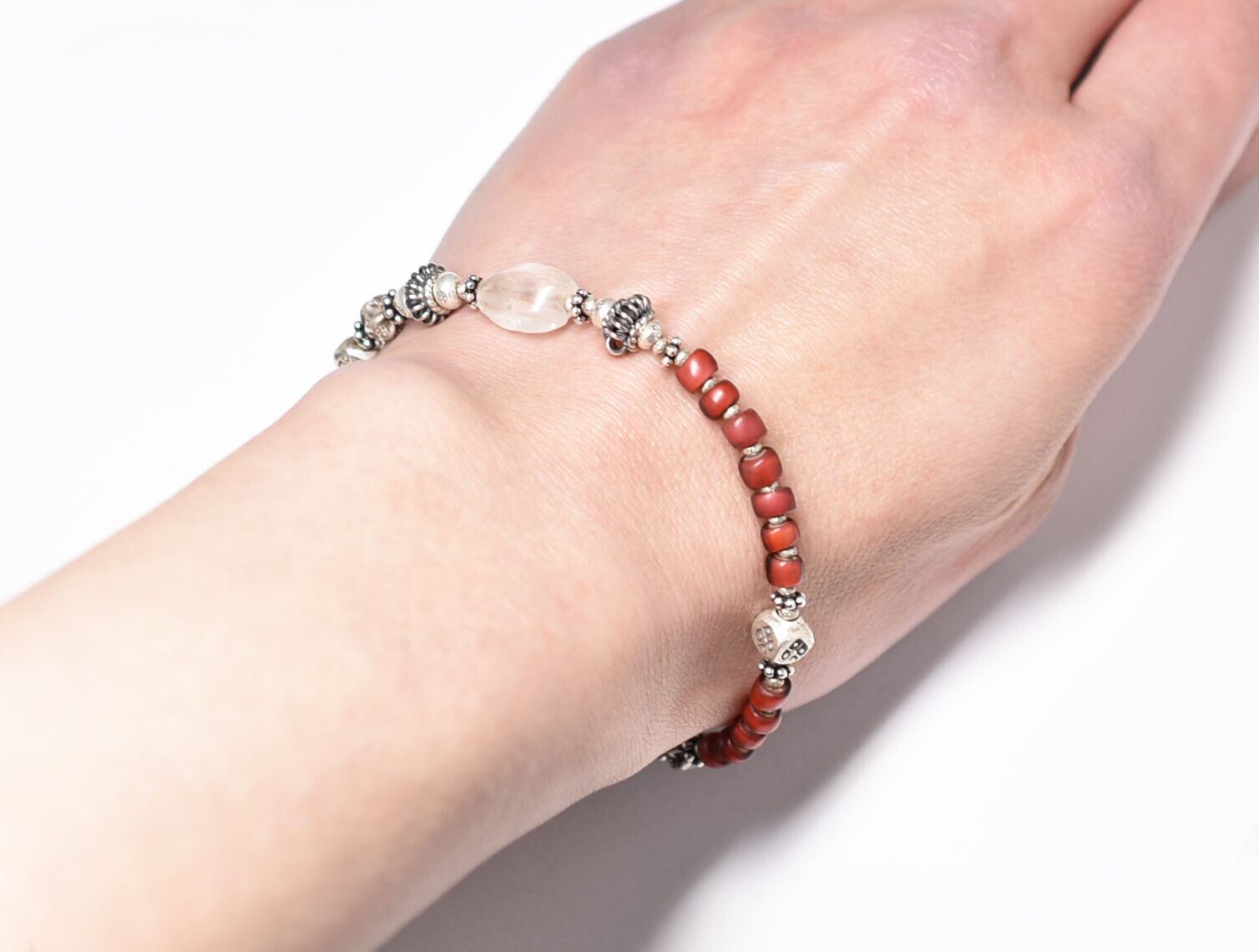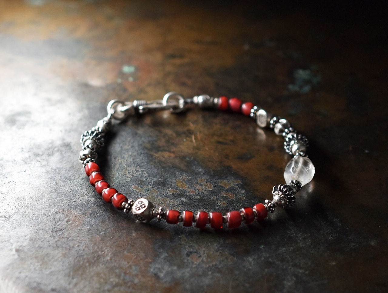 古代水晶と金赤ホワイトハーツ、多彩カレンシルバー&バリシルバーのブレス