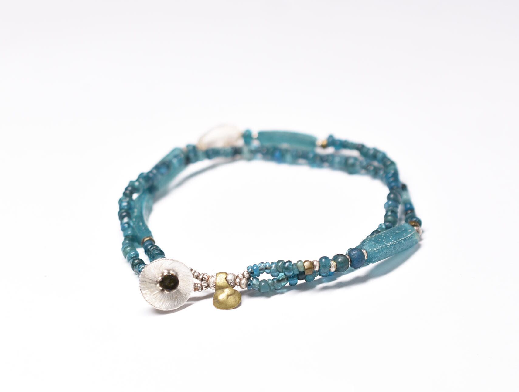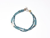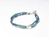 古代水晶と、ローマングラスと、エメラルドブルービーズ、oldオリッサブラスなどを繋いだ2連のブレスです。