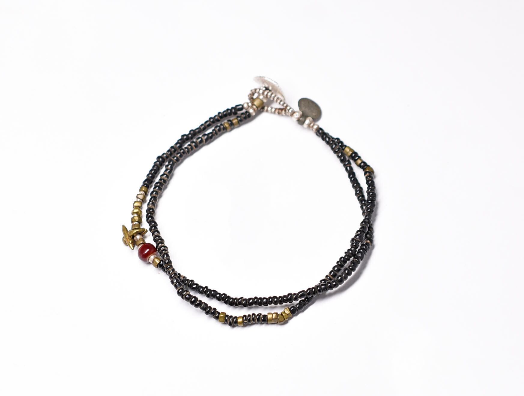 血赤ホワイトハーツ、oldオリッサブラス、漆黒ビーズの華奢な2連ブレス