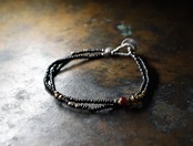 血赤ホワイトハーツ、oldオリッサブラス、漆黒ビーズなどを繋いだ華奢な2連のブレスです。
