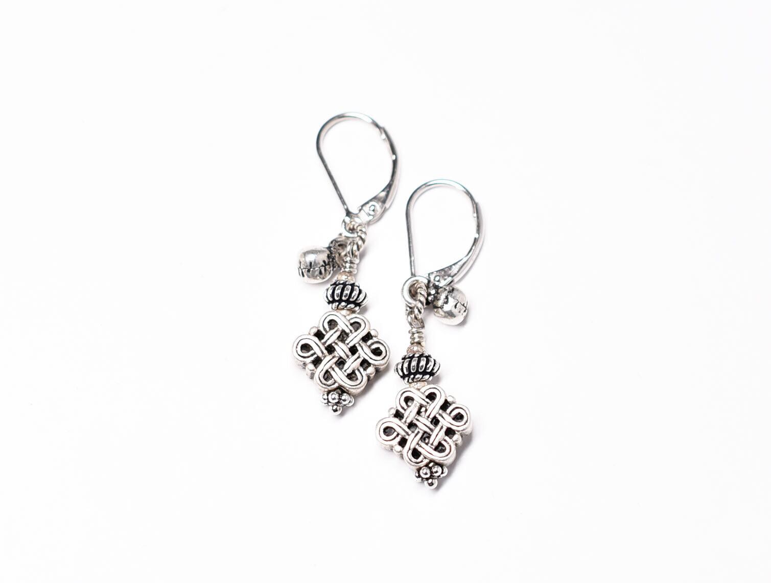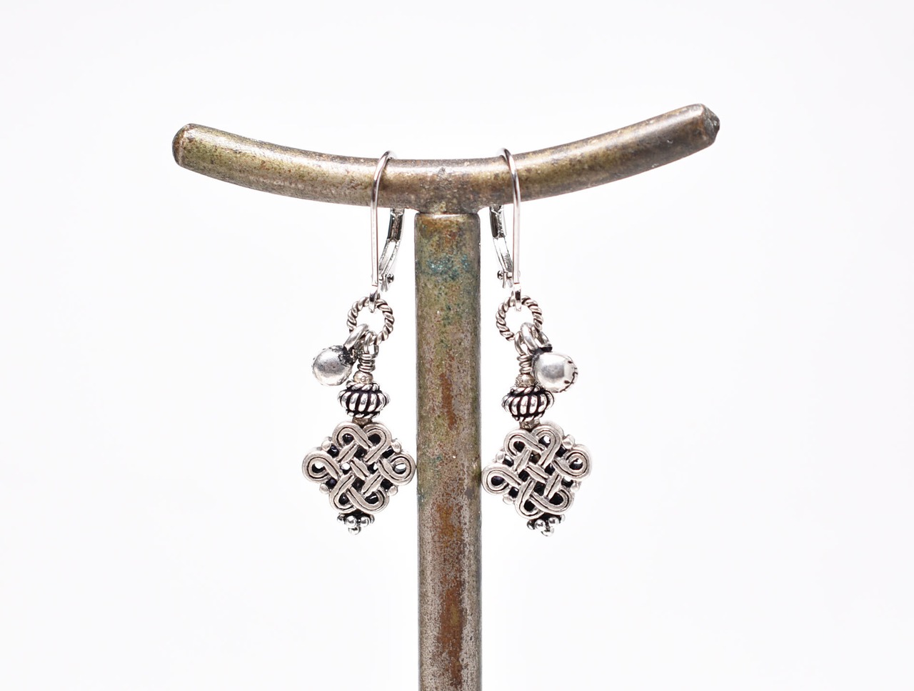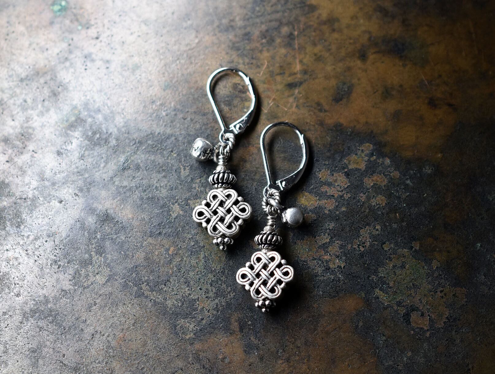 エンドレスノットとインドシルバーの小さな鈴のピアスのピアス