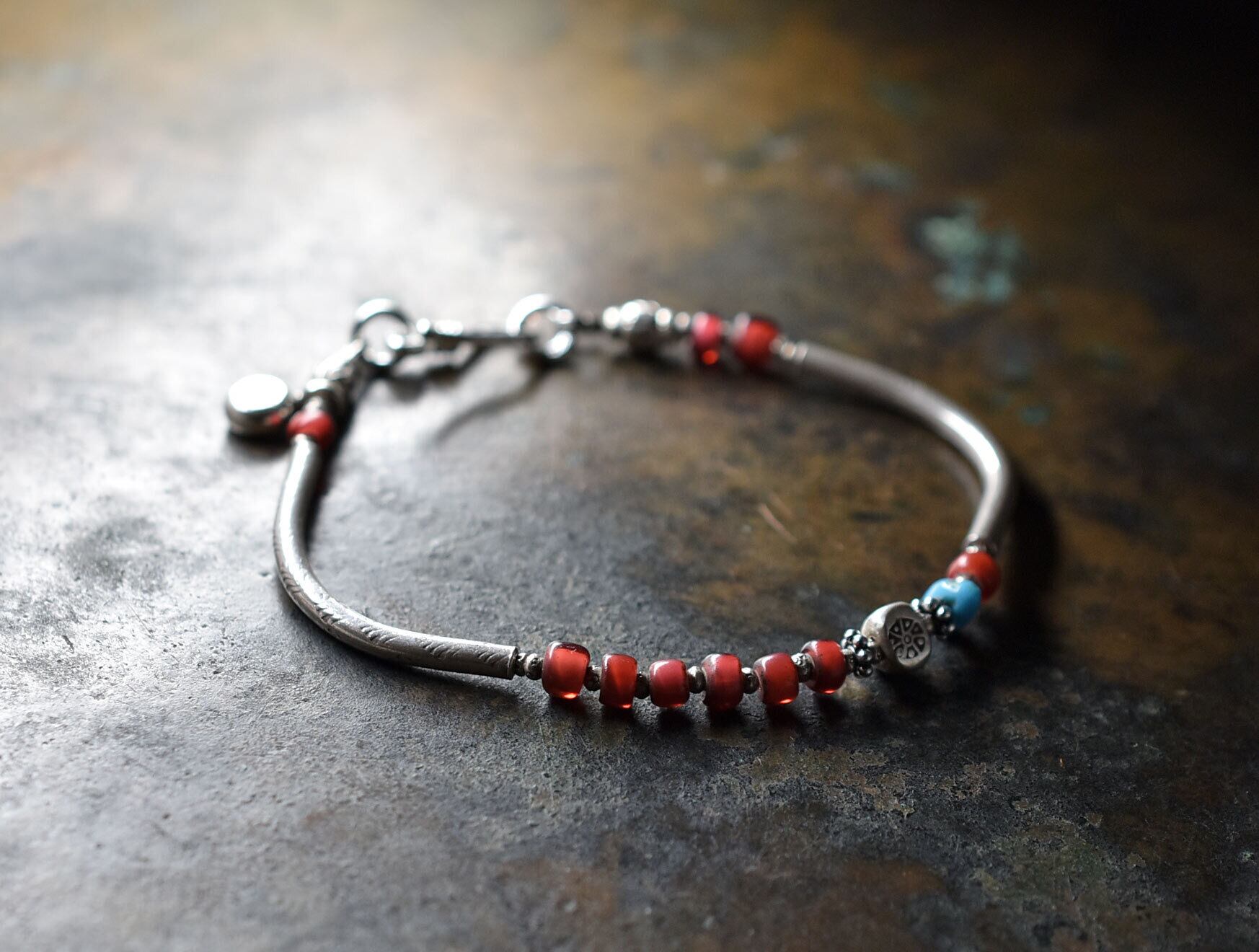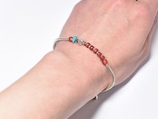 湾曲カレンシルバーと金赤ホワイトハーツ、キャッスルドームターコイズの華奢なブレス