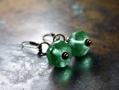 アンティークウランガラスビーズと、ぷっくりとしたブラスビーズを繋いだボリュームのあるピアスです。
