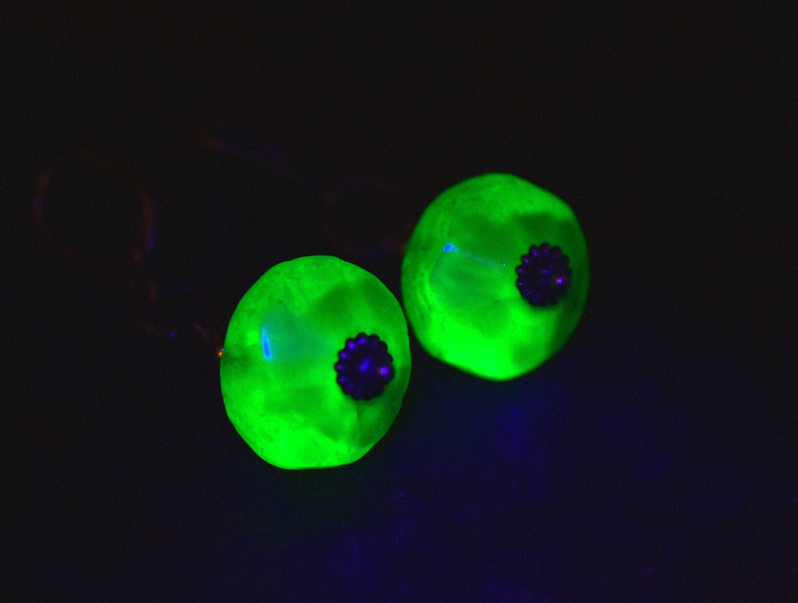 独特なセミクリアグリーンのビーズは、極々微量のウランで発色させています。ブラックライトを当てると光ります!
