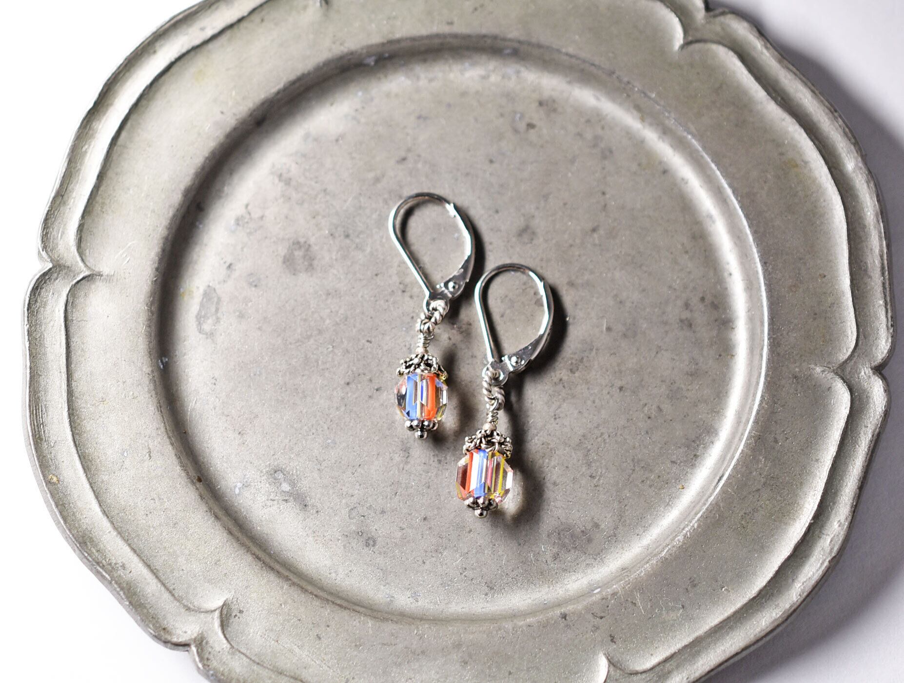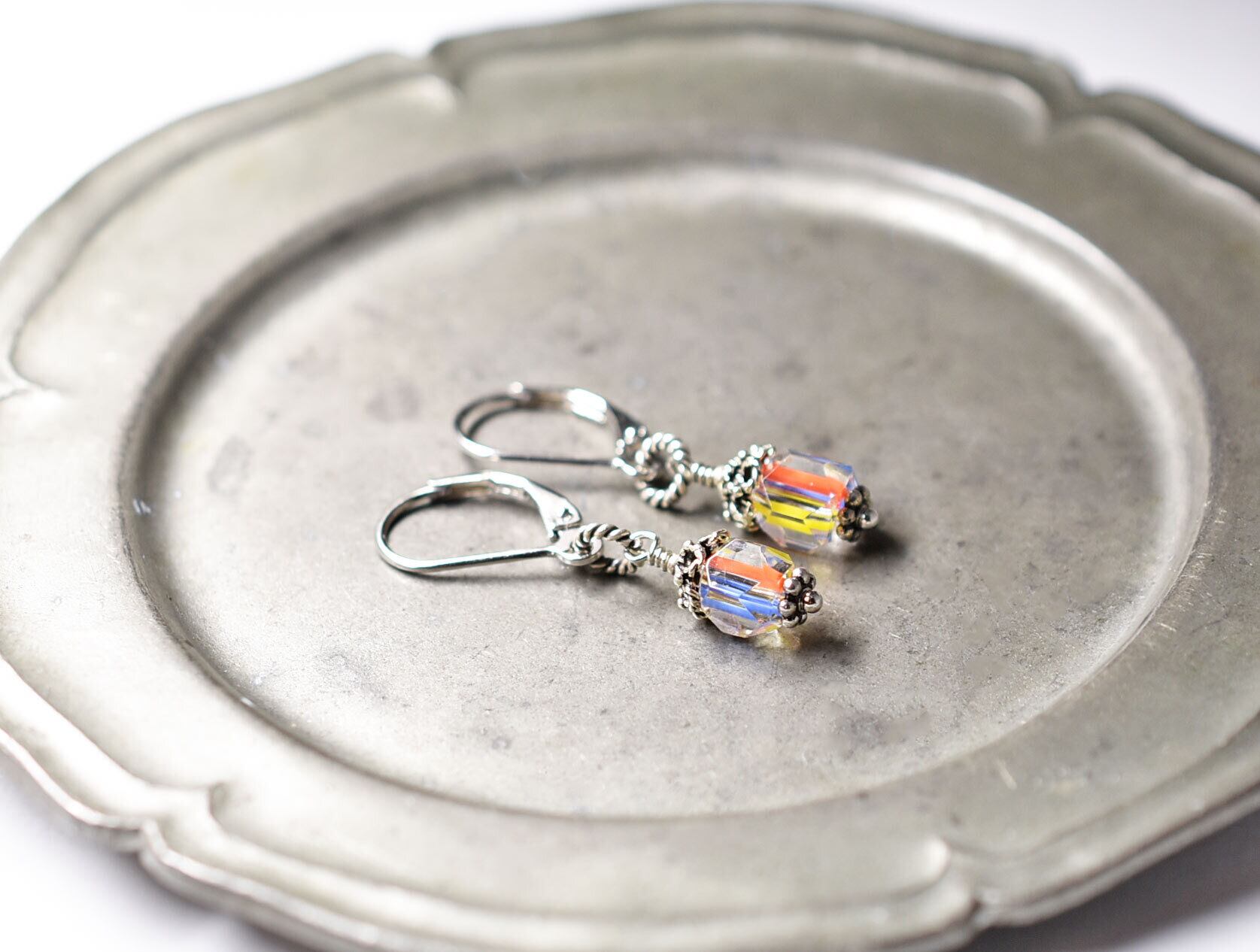 下のお花パーツ、フレンチフックもシルバーです。