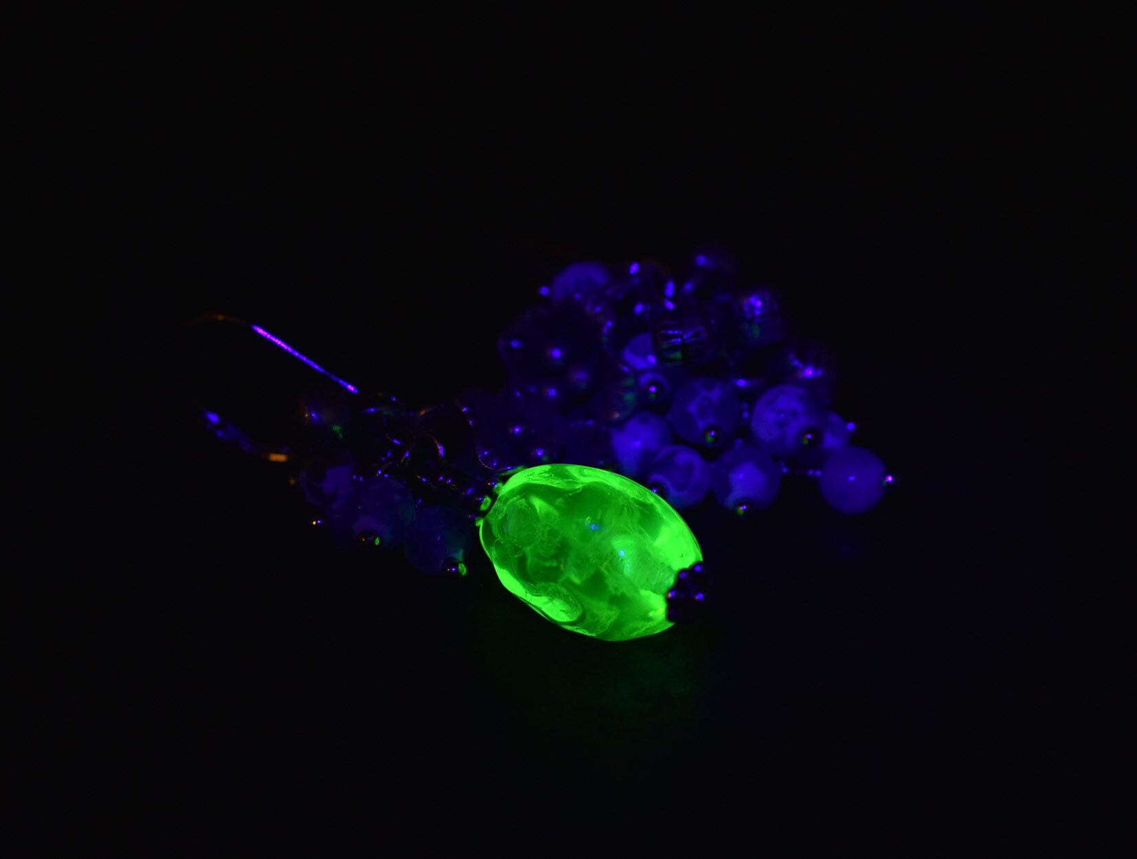 (ウランガラスの大きさ:縦1.5cm 横1cm)