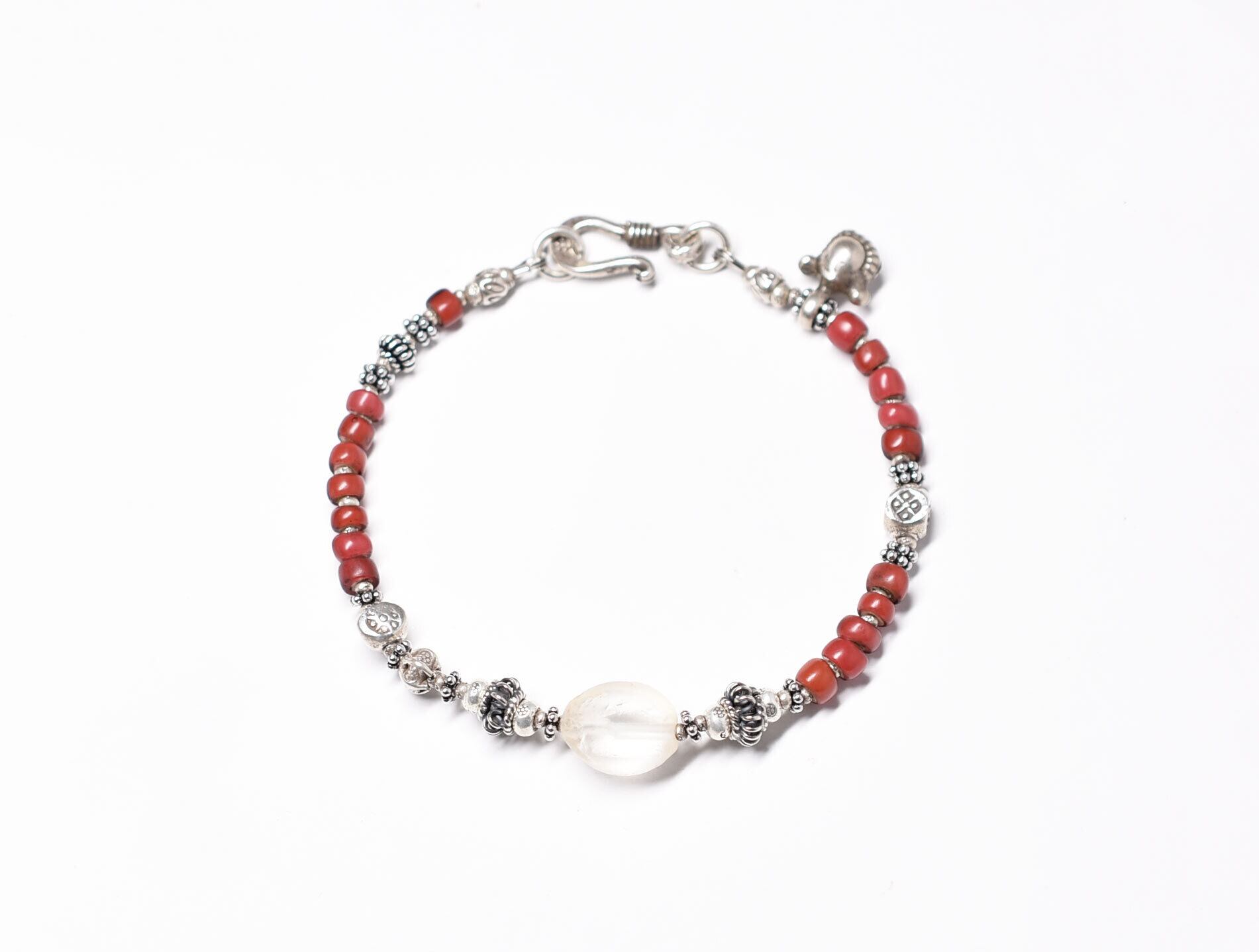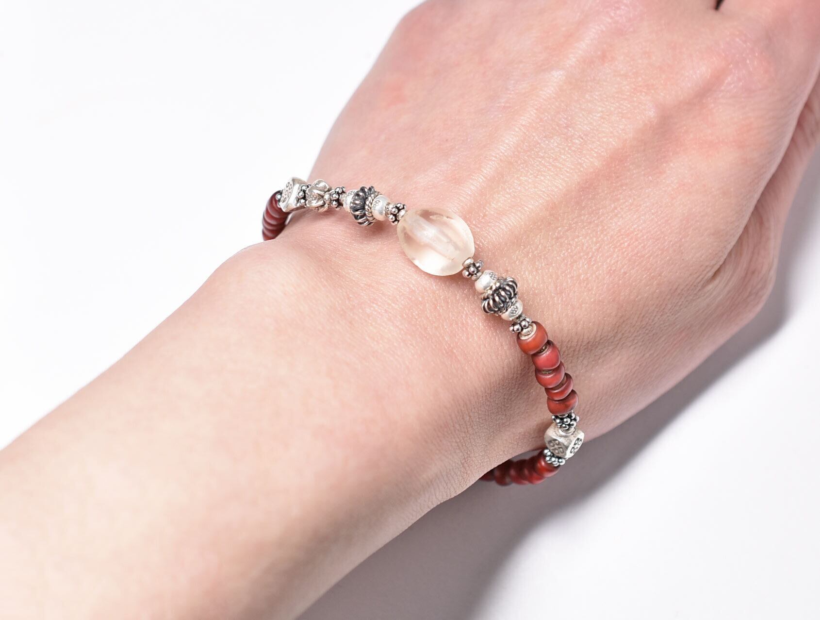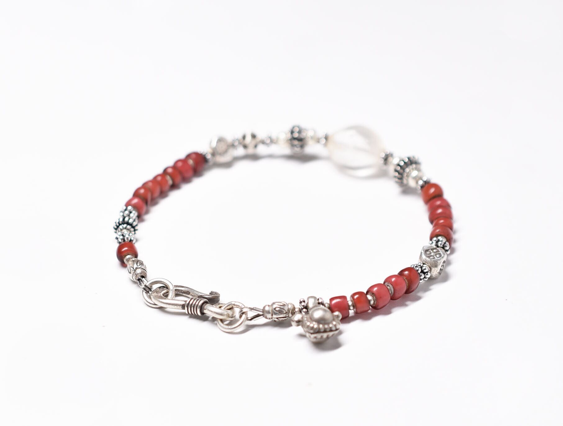 古代水晶と金赤ホワイトハーツ、多彩カレンシルバー&バリシルバーのブレス