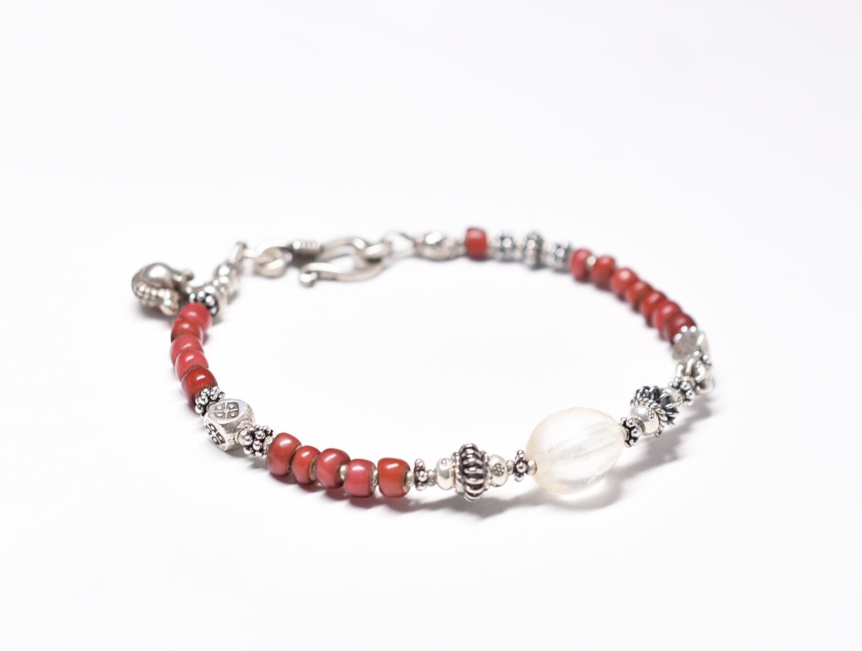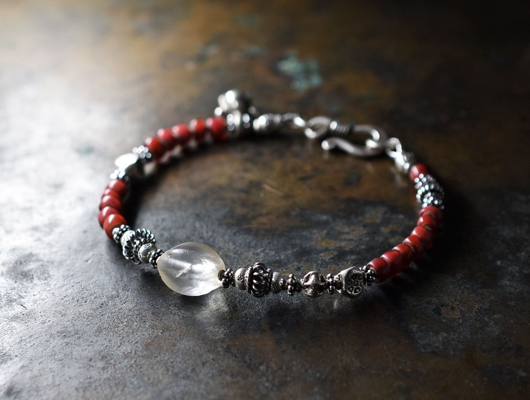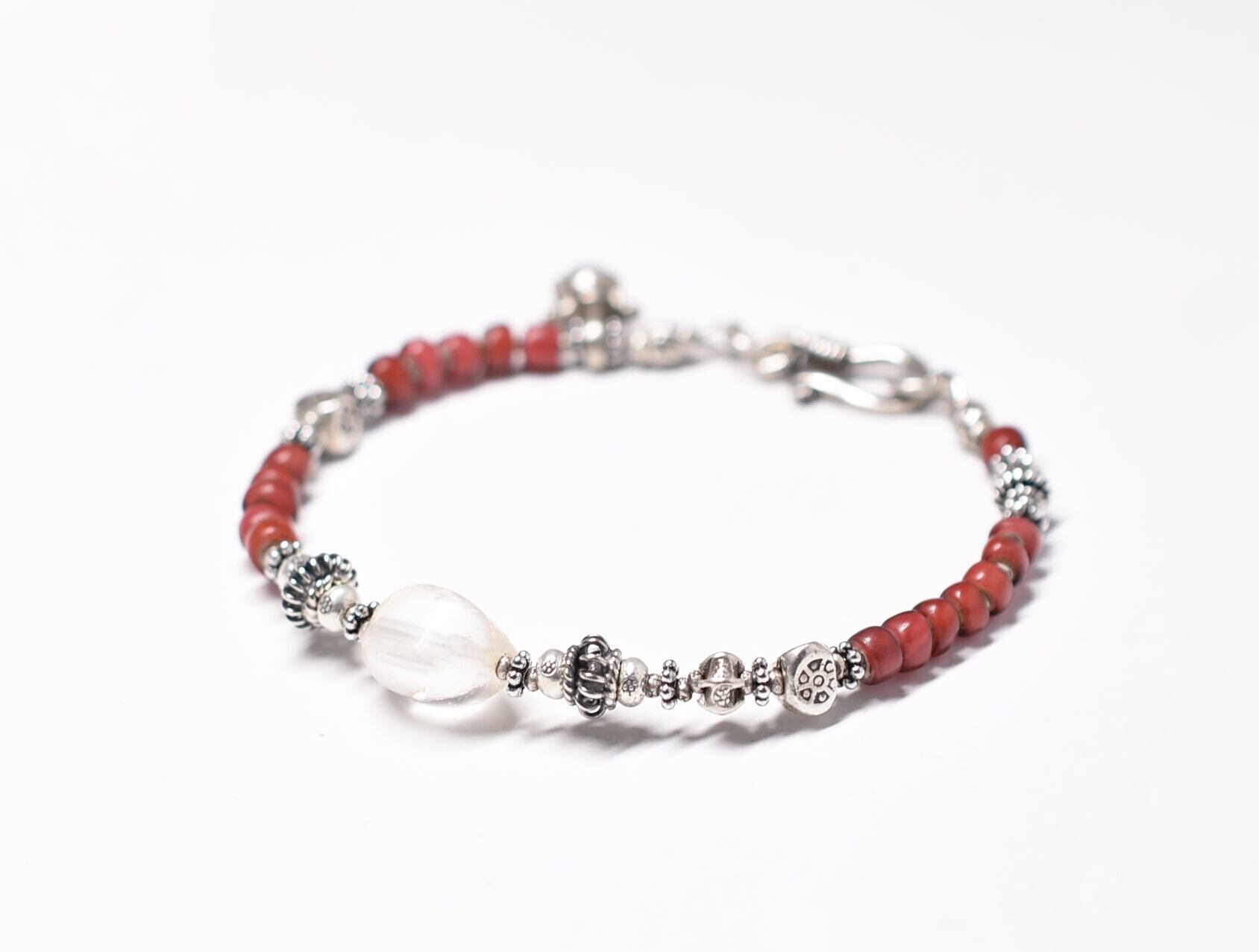 古代水晶と金赤ホワイトハーツ、多彩カレンシルバー&バリシルバーのブレス