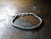 湾曲カレンシルバーとキングマンターコイズ、金赤ホワイトハーツの華奢なブレス