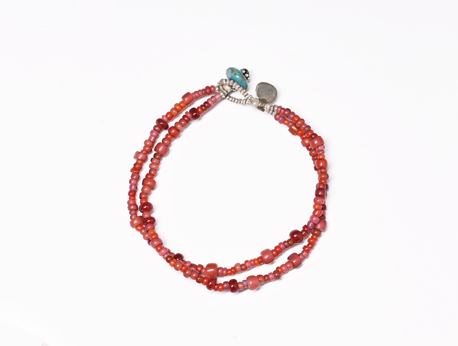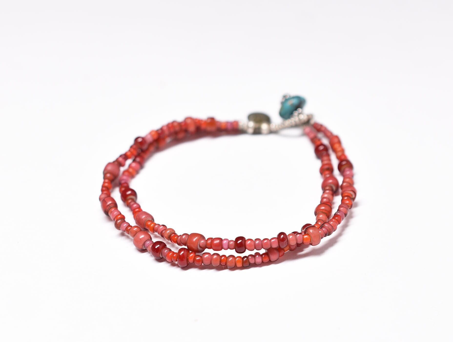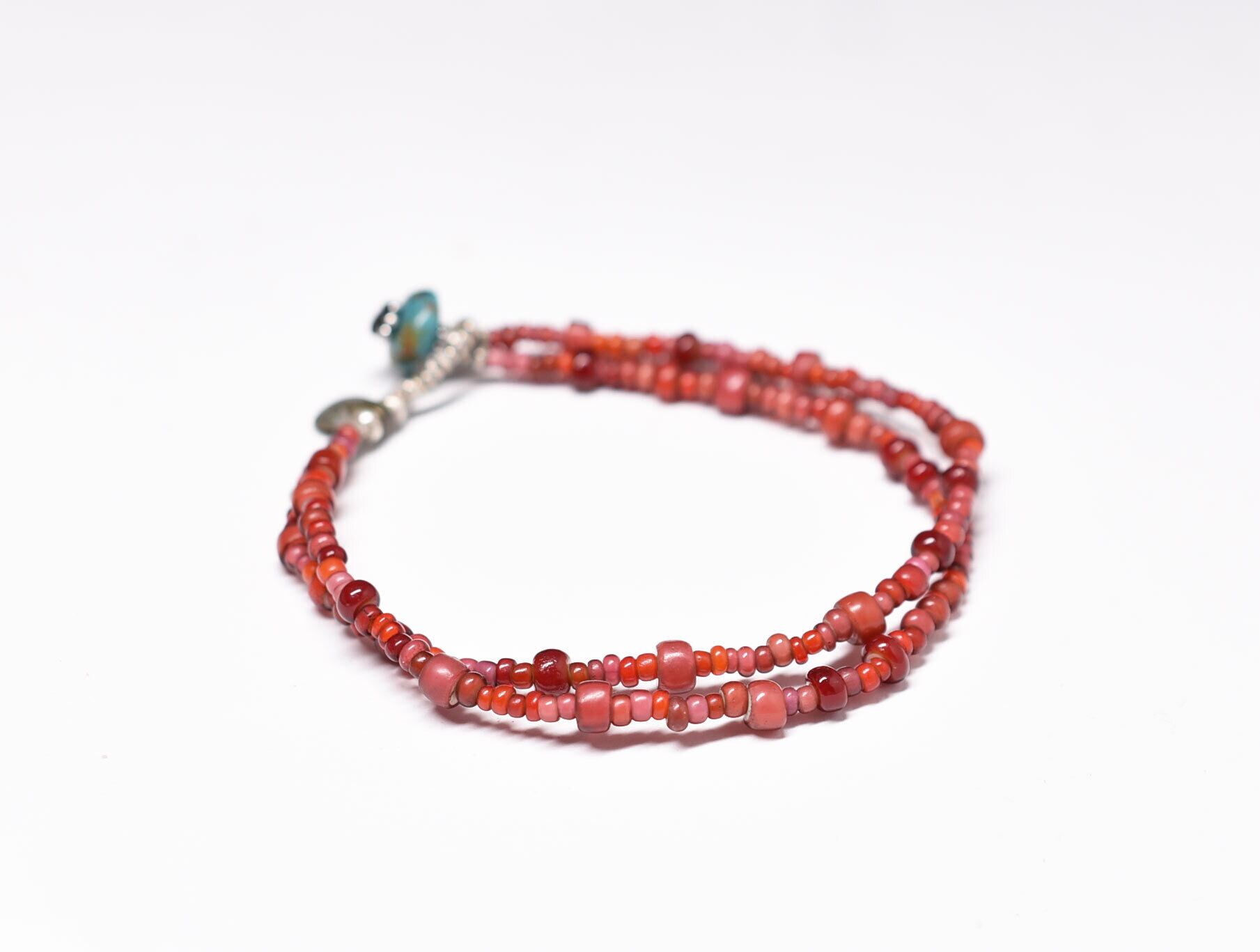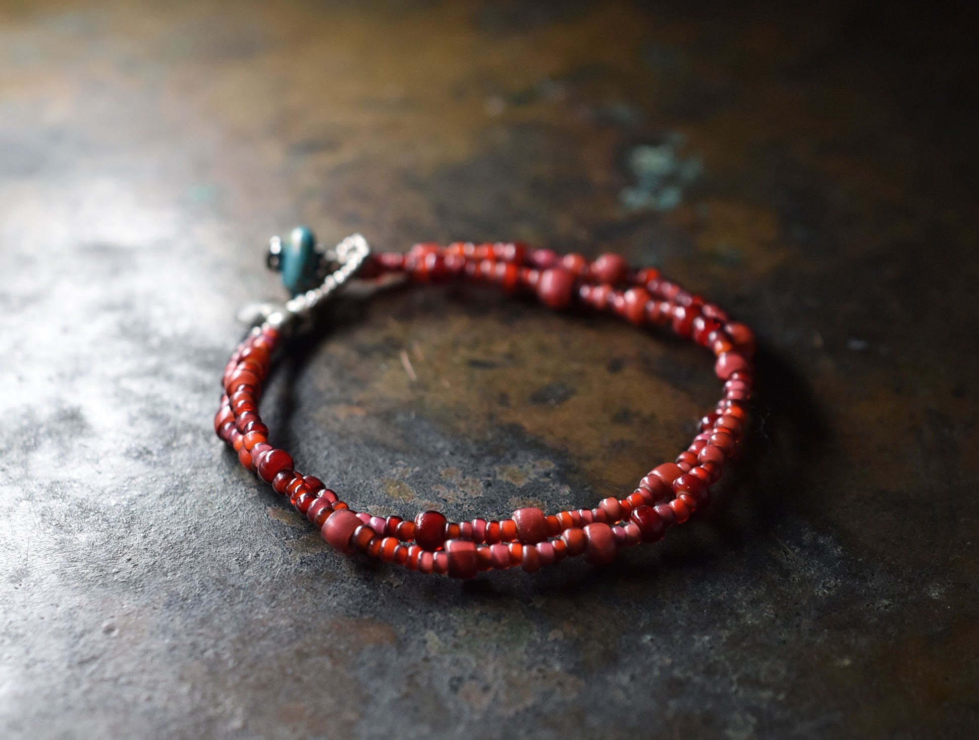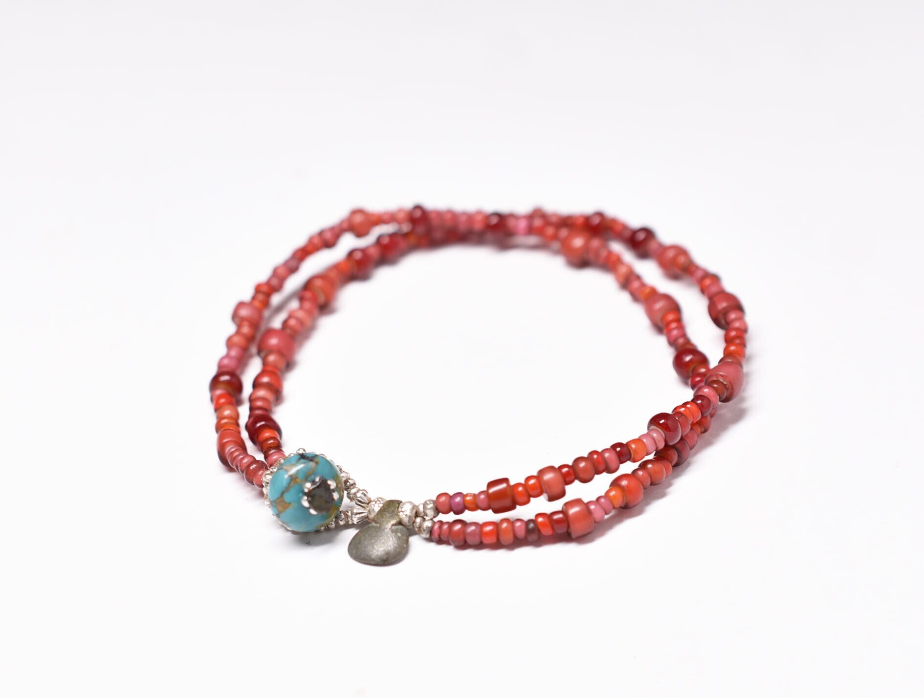 金赤&血赤ミックス多彩ホワイトハーツの2連ブレス(ターコイズ留め金)