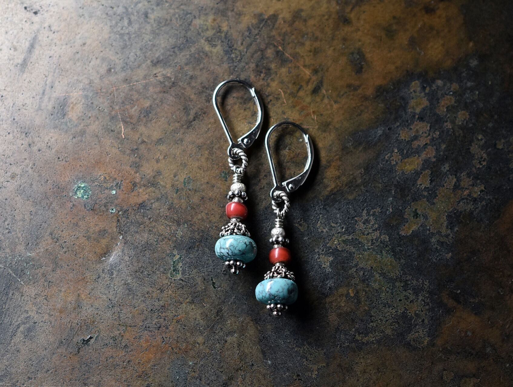 ディスク型ターコイズと金赤ホワイトハーツを繋いだやや小さめなピアスです。
