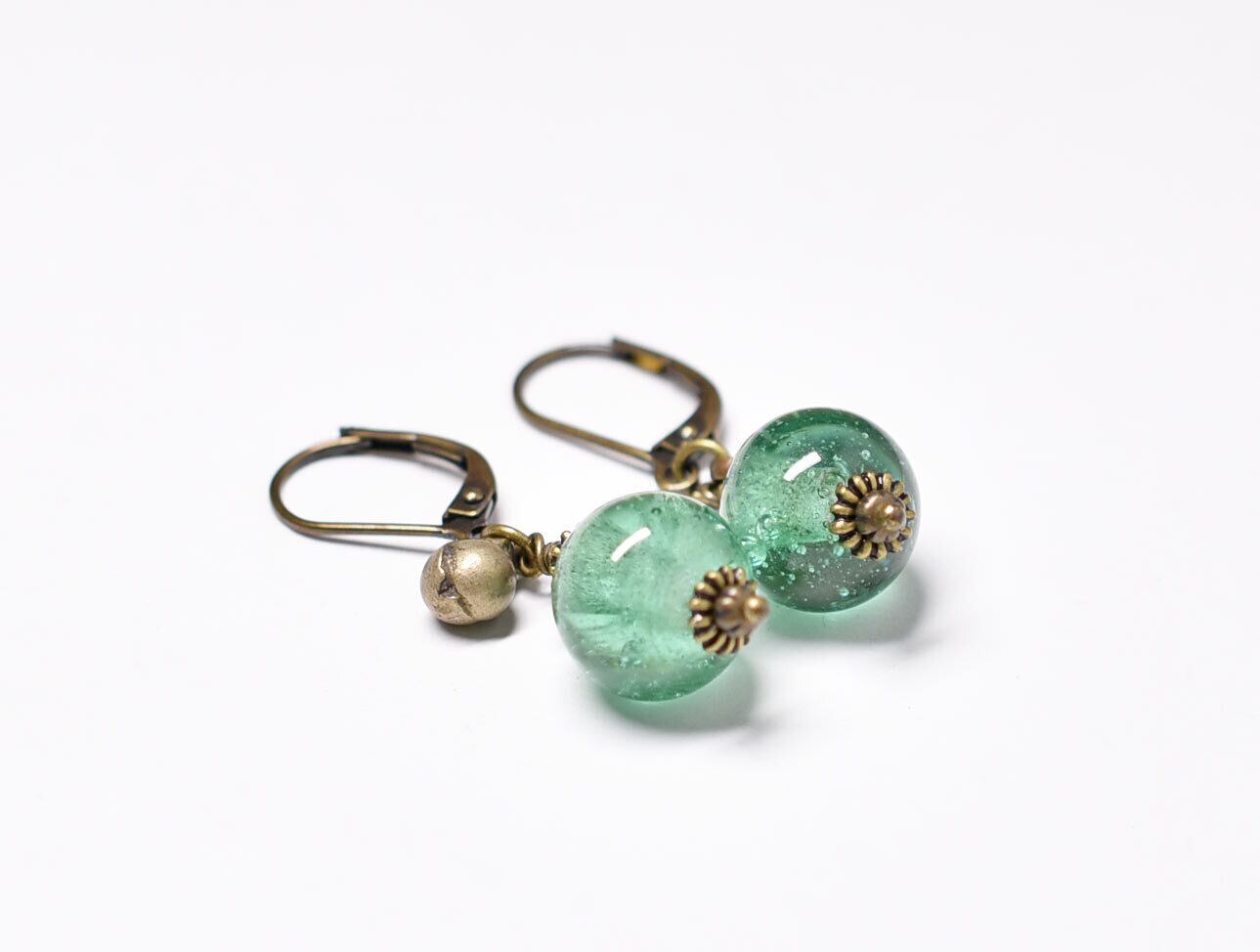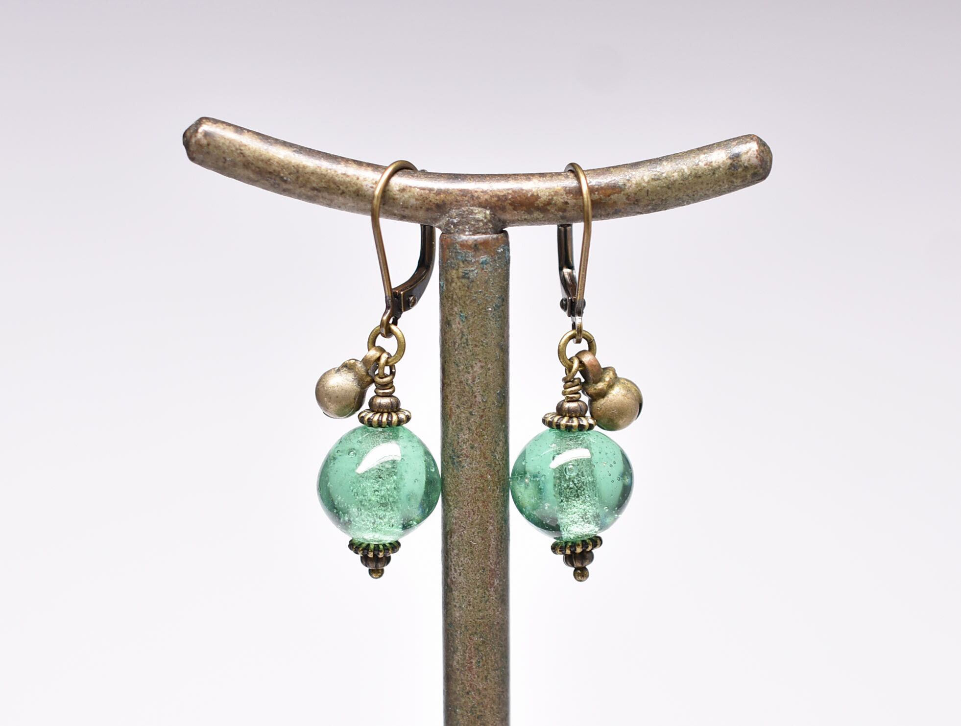 ヴィンテージビーズの味わいと清涼感を感じられるピアスです。