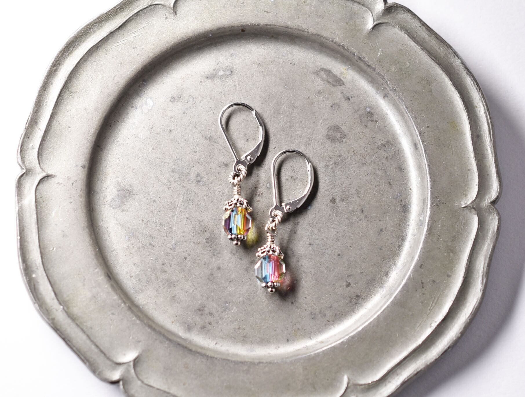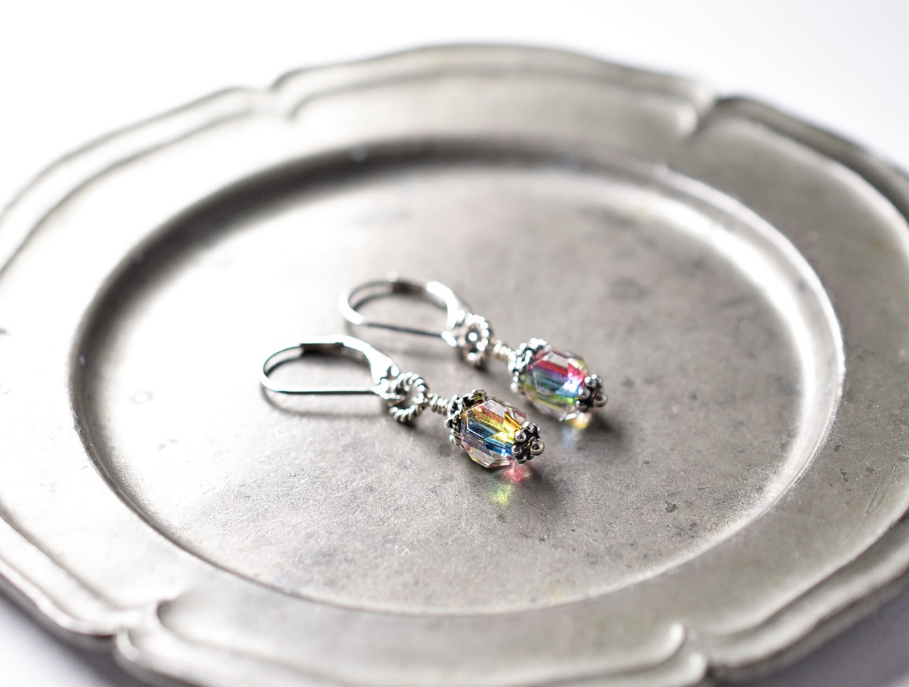 下のお花パーツ、フレンチフックもシルバーです。