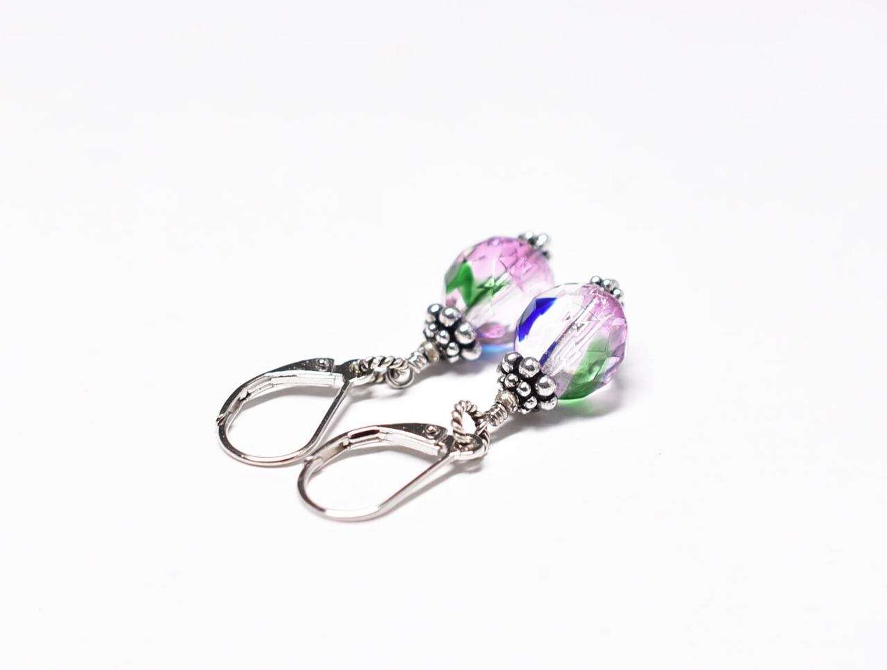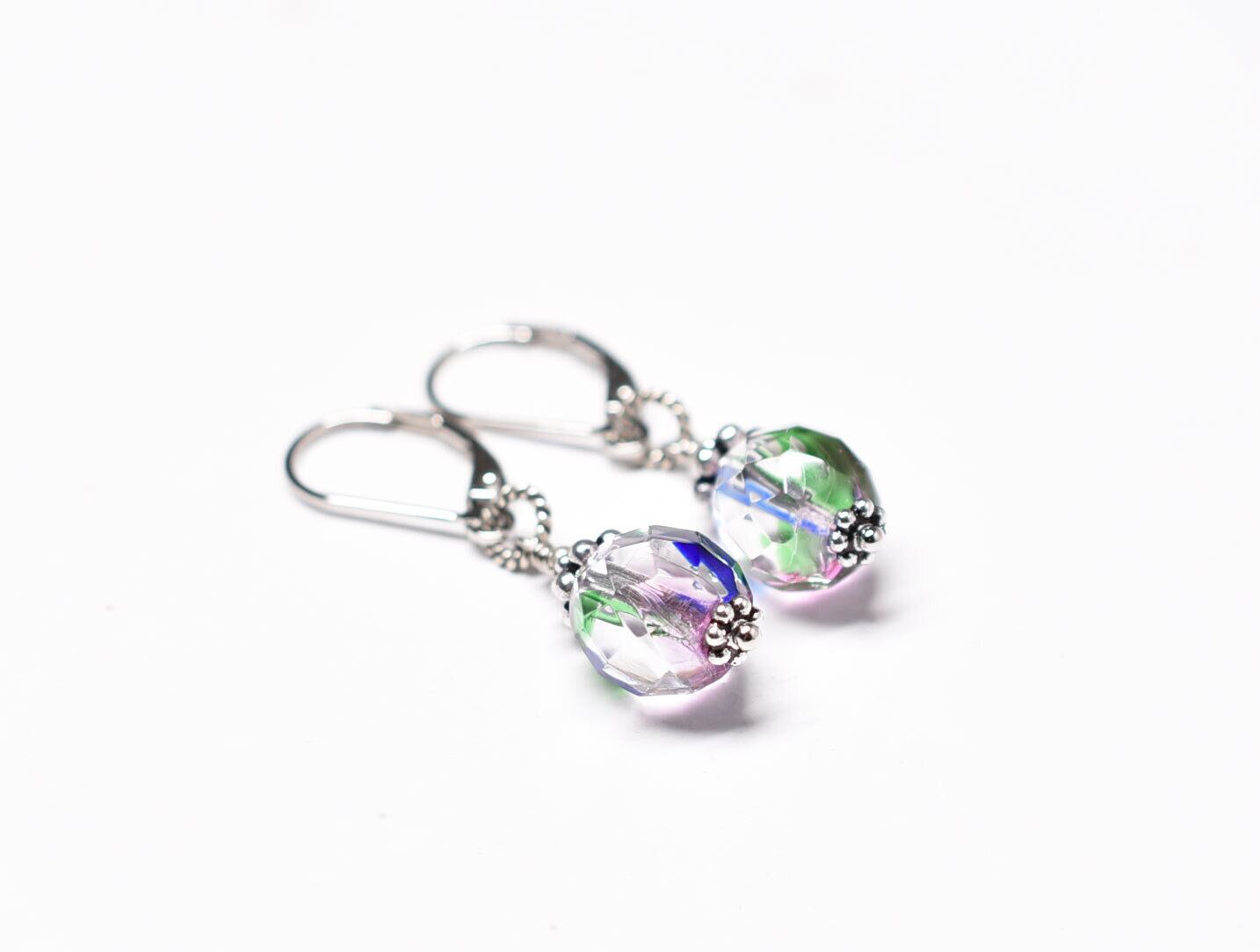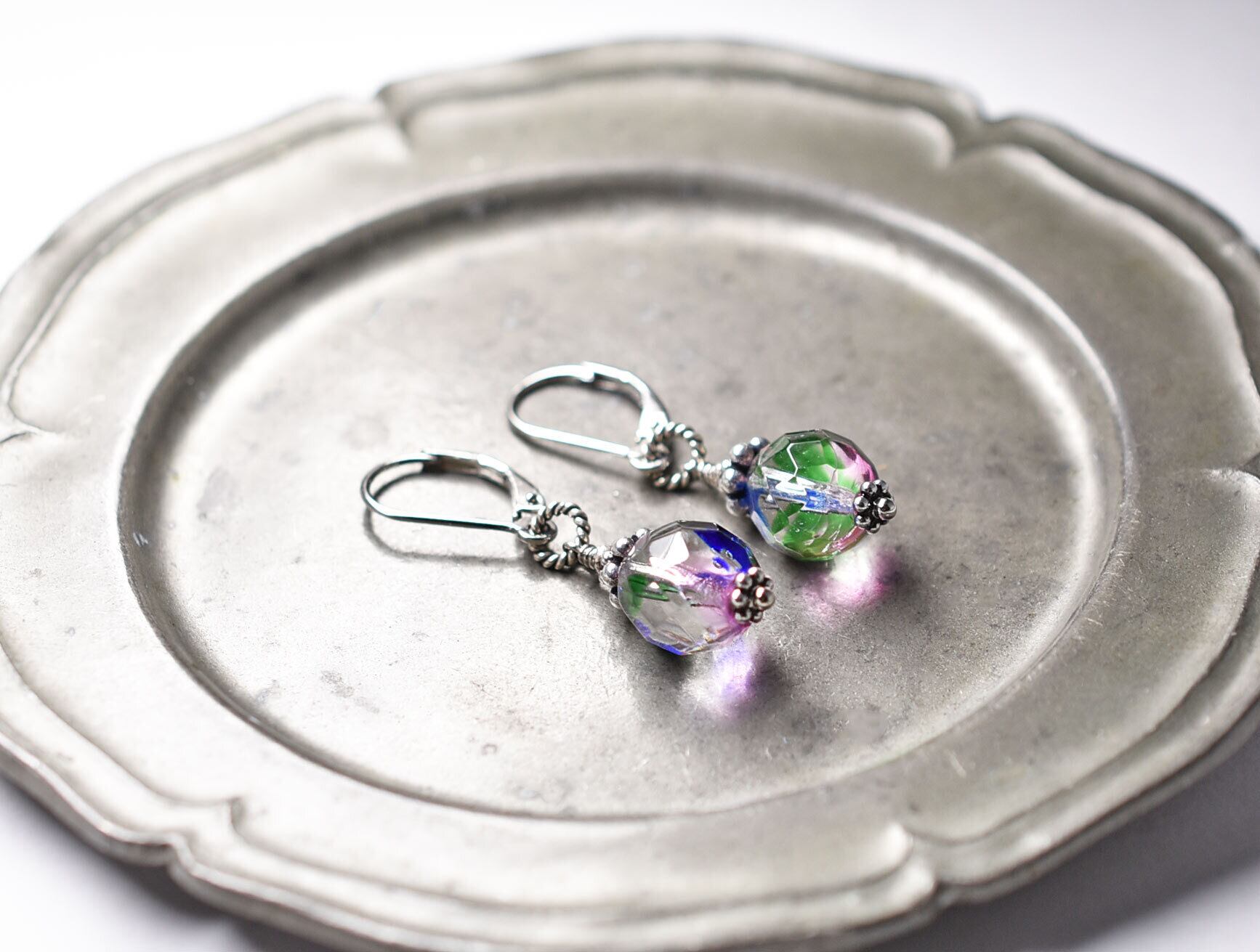 アイリスガラスと呼ばれるチェコ産のアンティークビーズのピアスです。