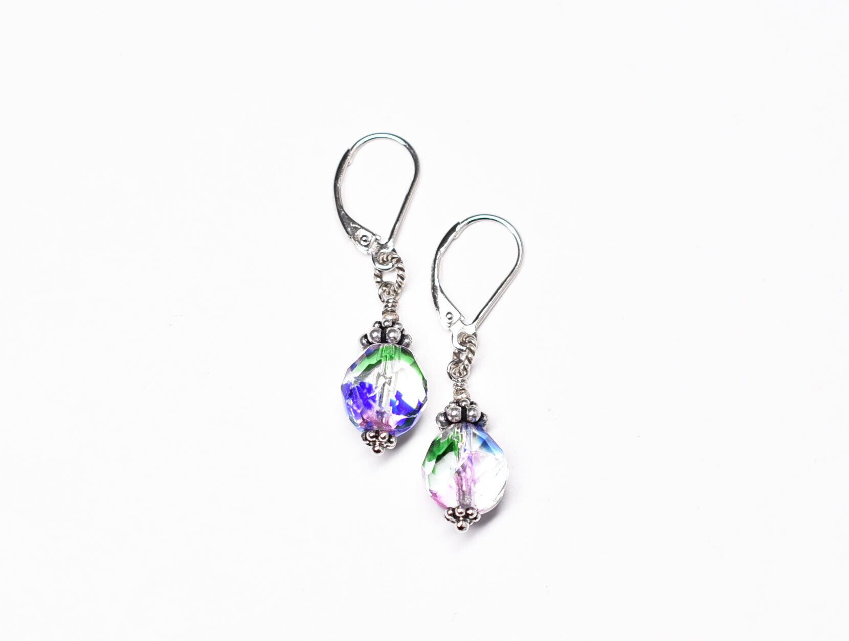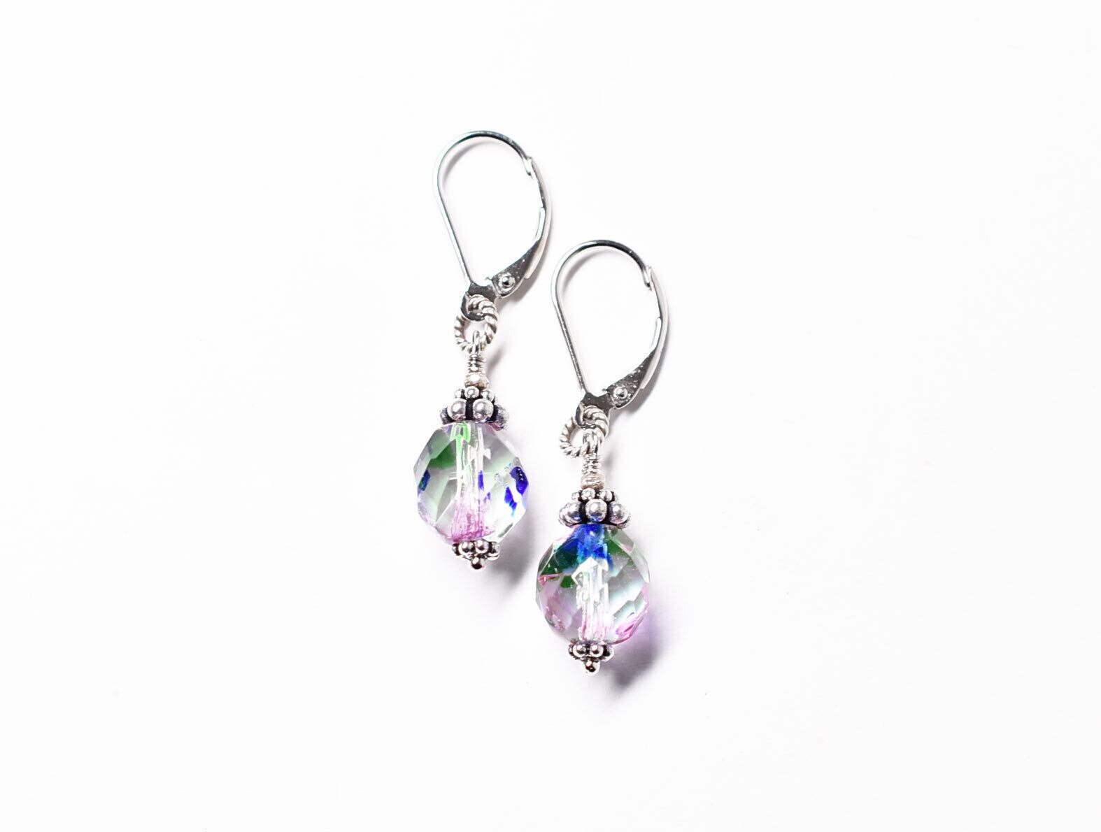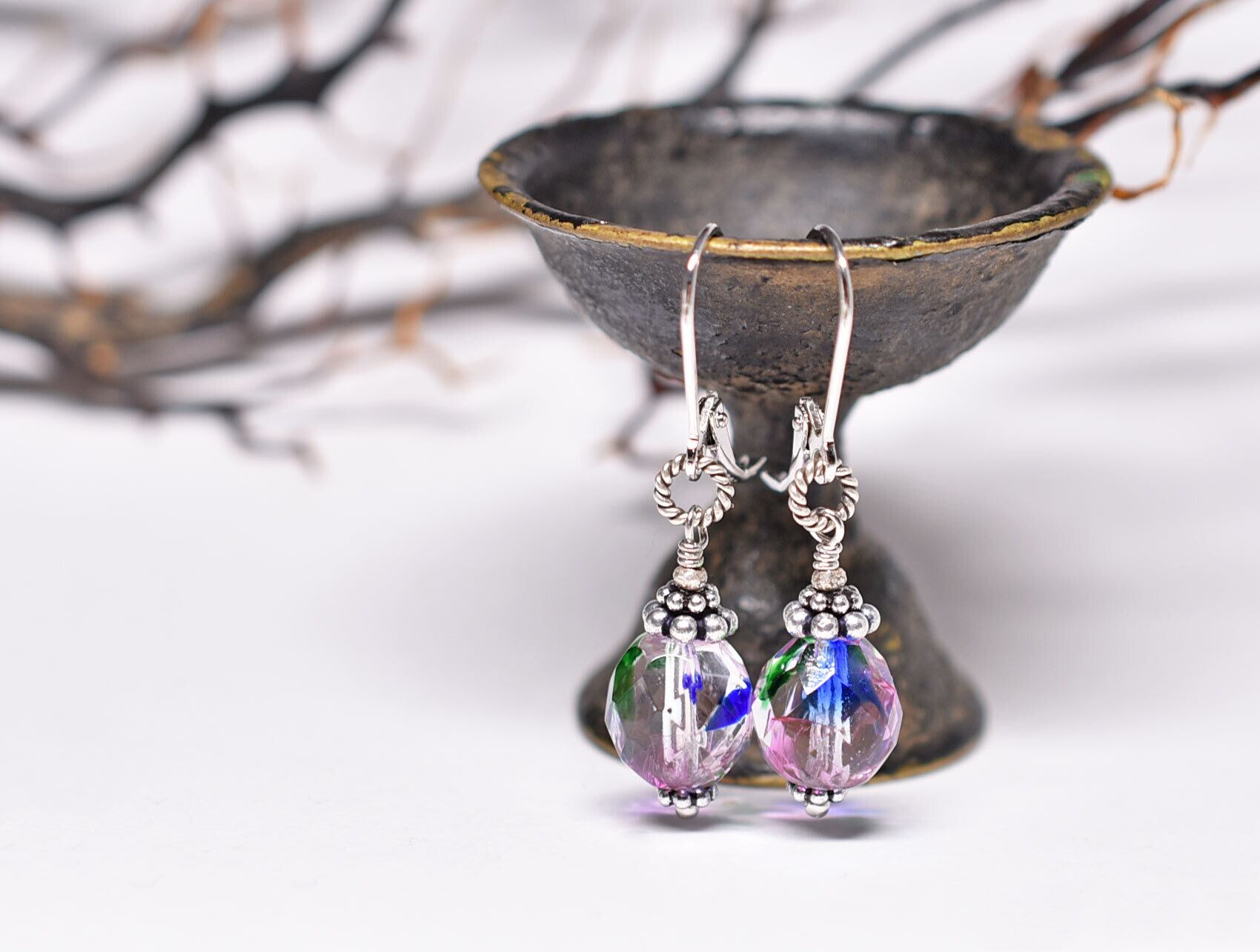 アイリスガラスと呼ばれるチェコ産のアンティークビーズのピアスです。
